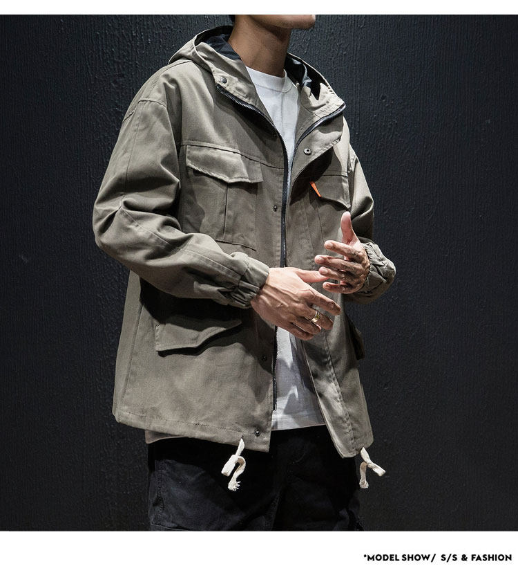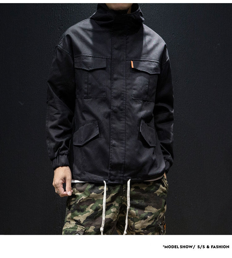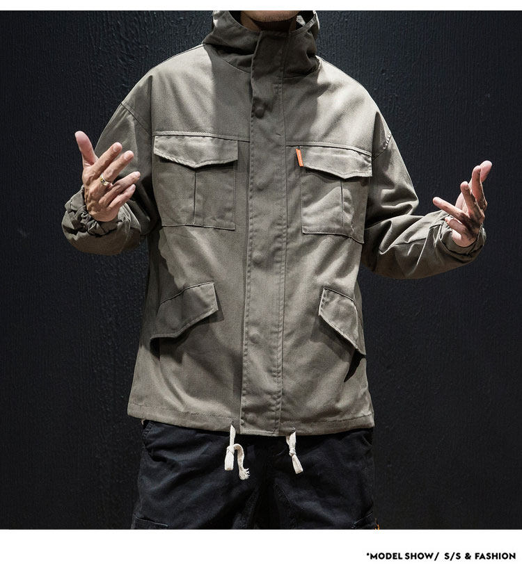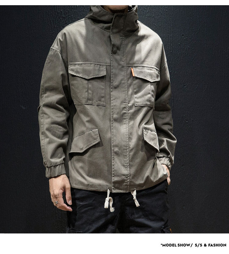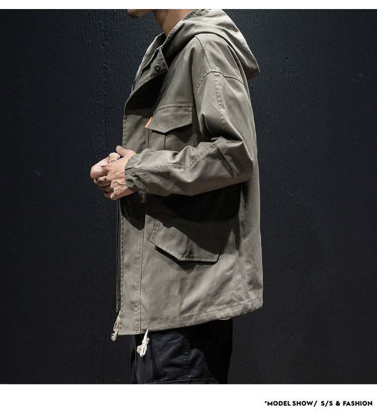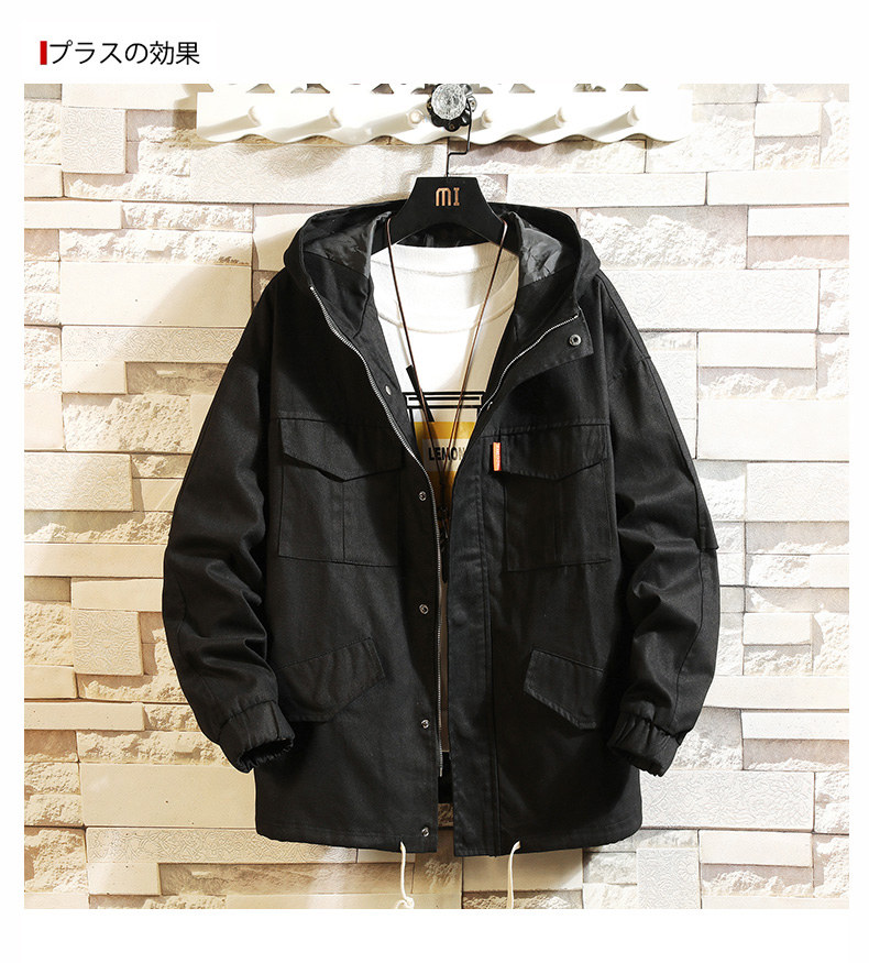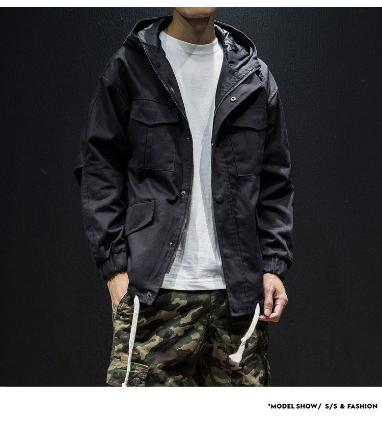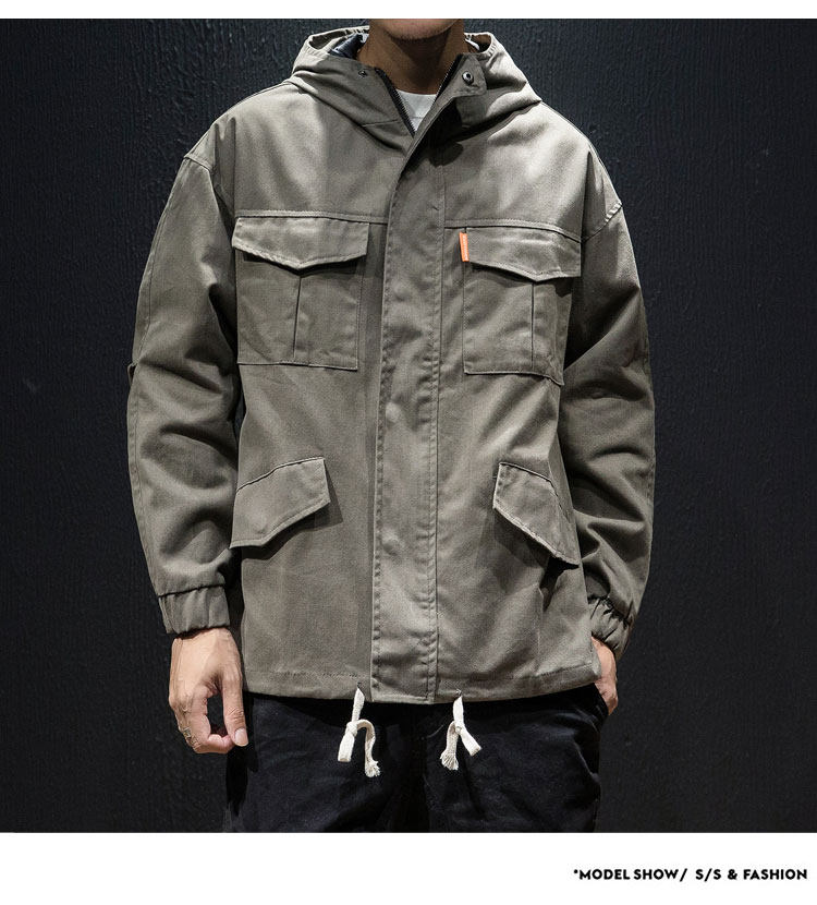 Куртка, японская ретро демисезонная толстовка с капюшоном, свободный крой, большой размер