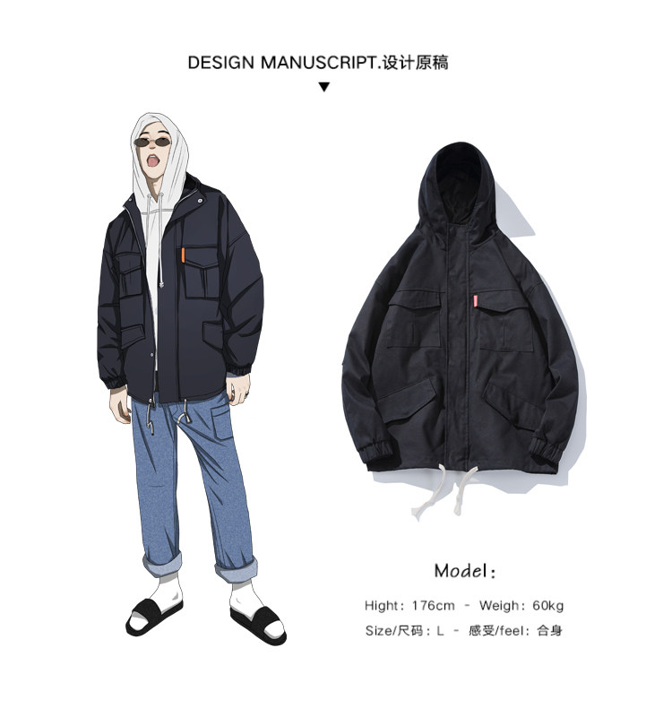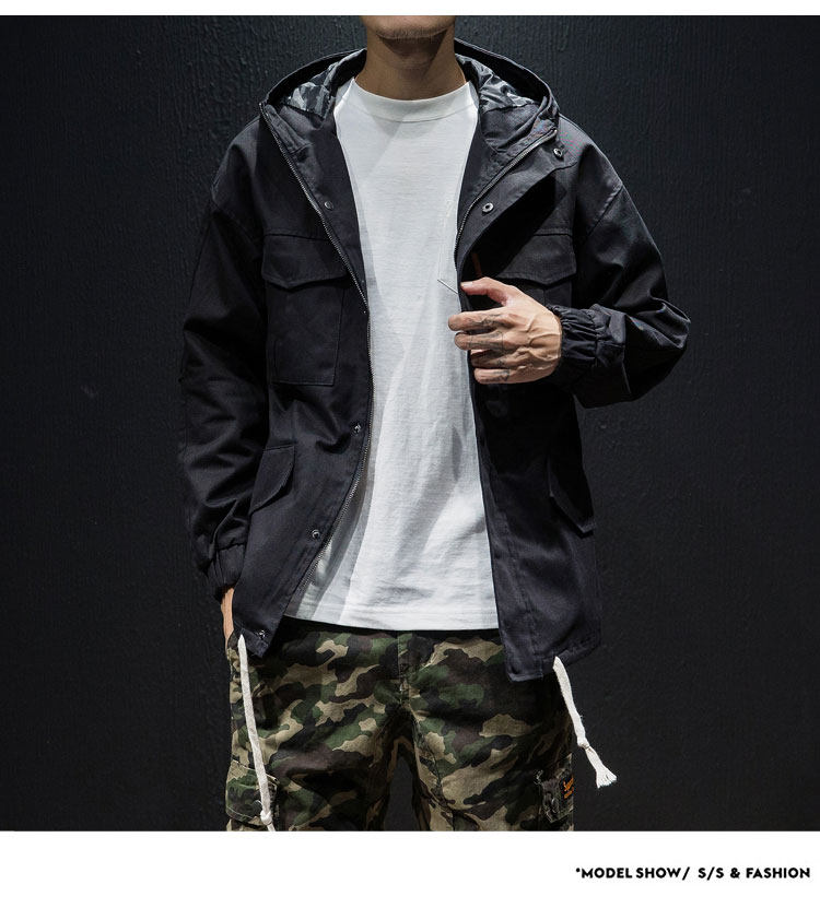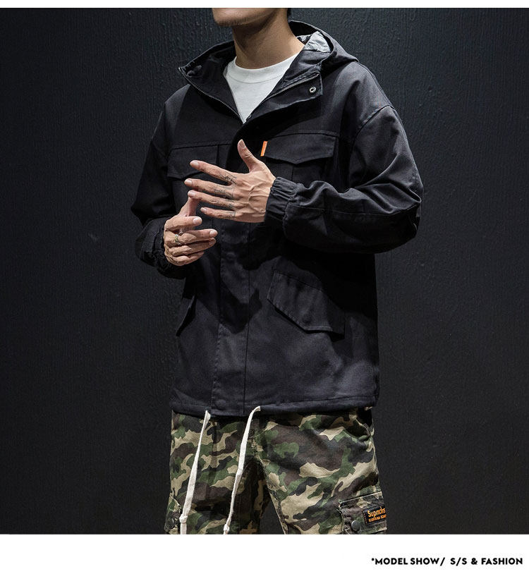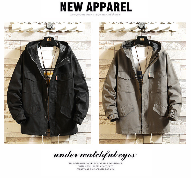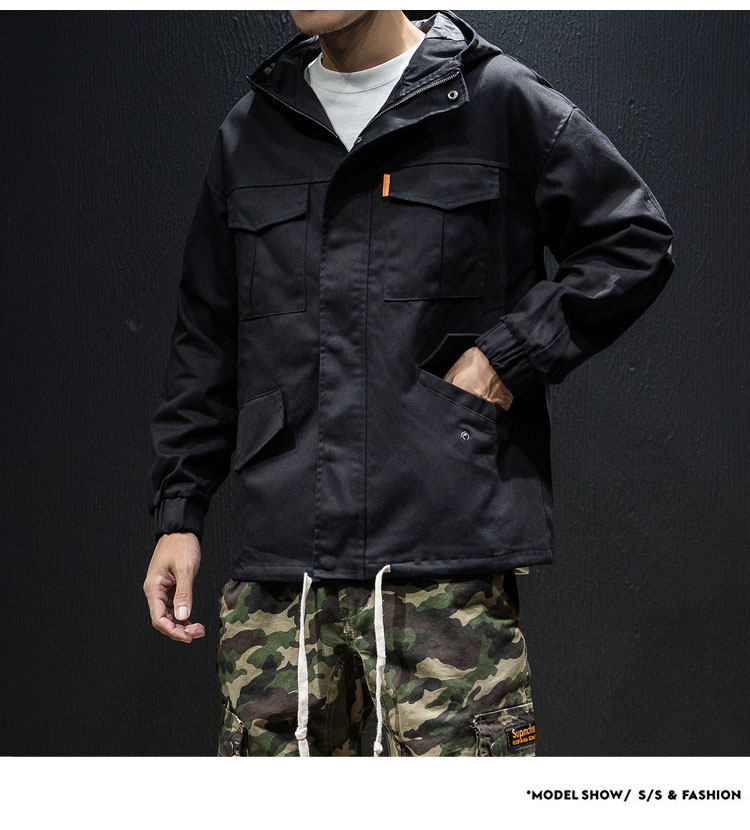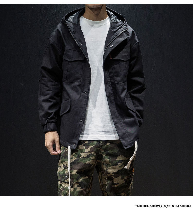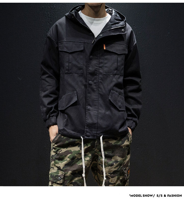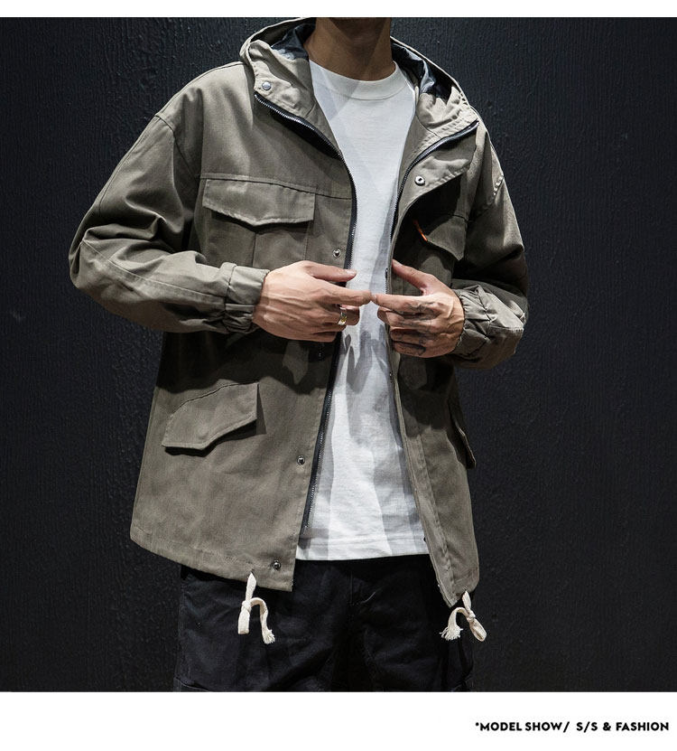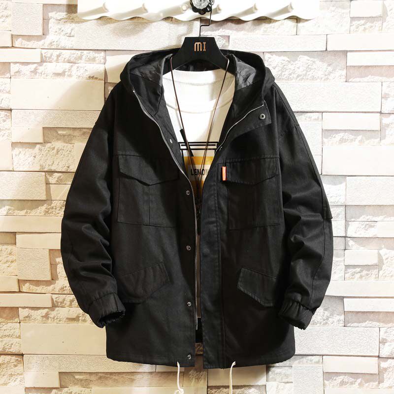 Куртка, японская ретро демисезонная толстовка с капюшоном, свободный крой, большой размер