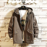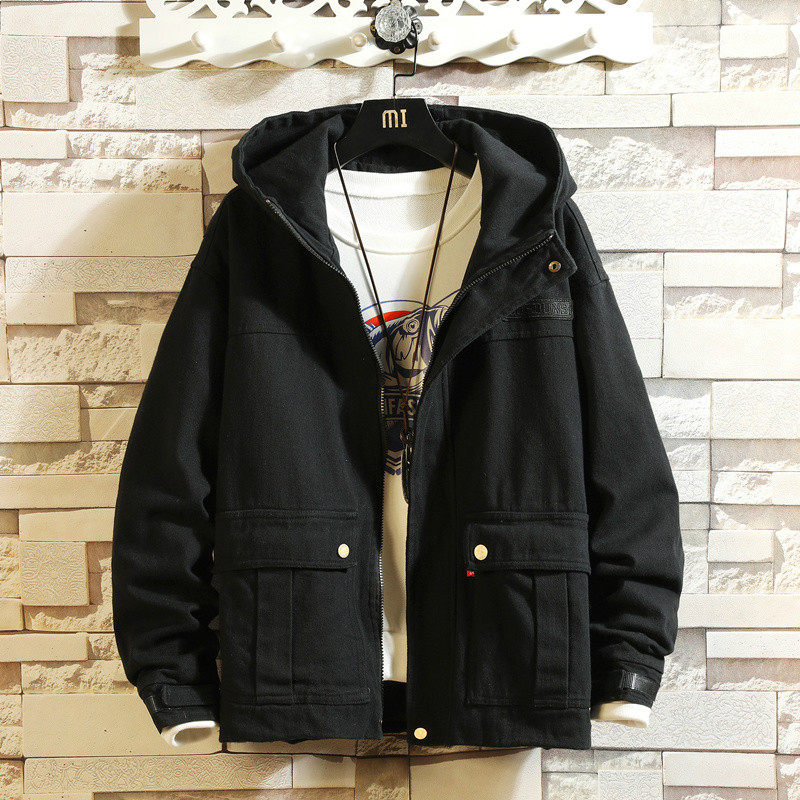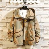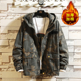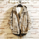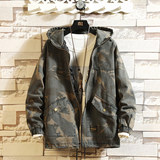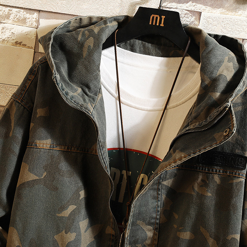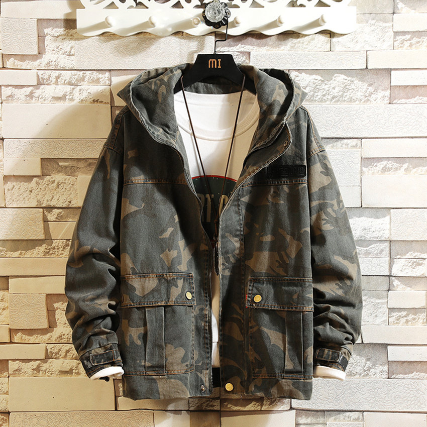 Камуфляжная джинсовая мужская весенняя трендовая куртка для отдыха с карманами с капюшоном, в корейском стиле