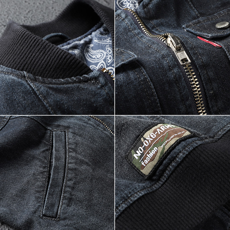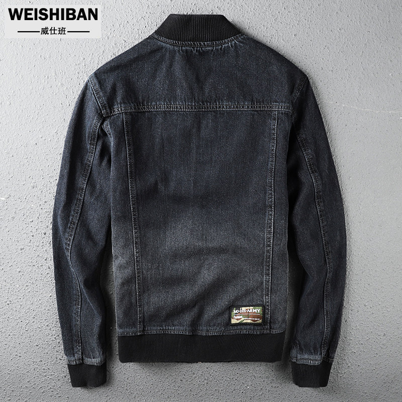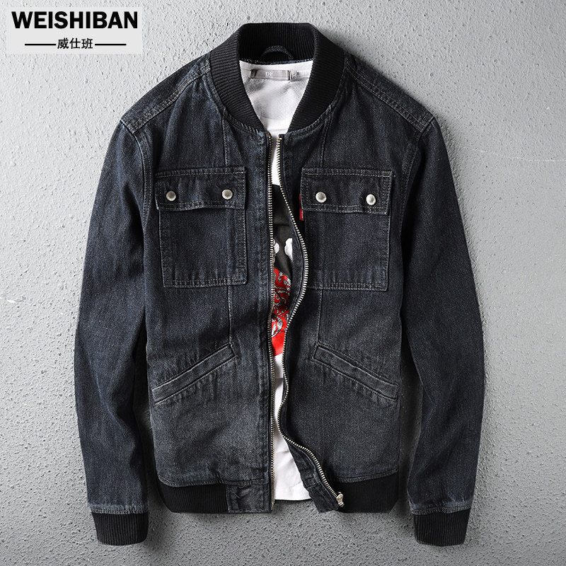 Ретро черная бейсбольная джинсовая модная трендовая универсальная осенняя куртка с молнией