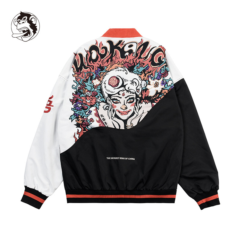 Wookong Goku Golden Nose White Hair Printing Jacket Мужская женская женская осенняя бейсбол снаружи прилива