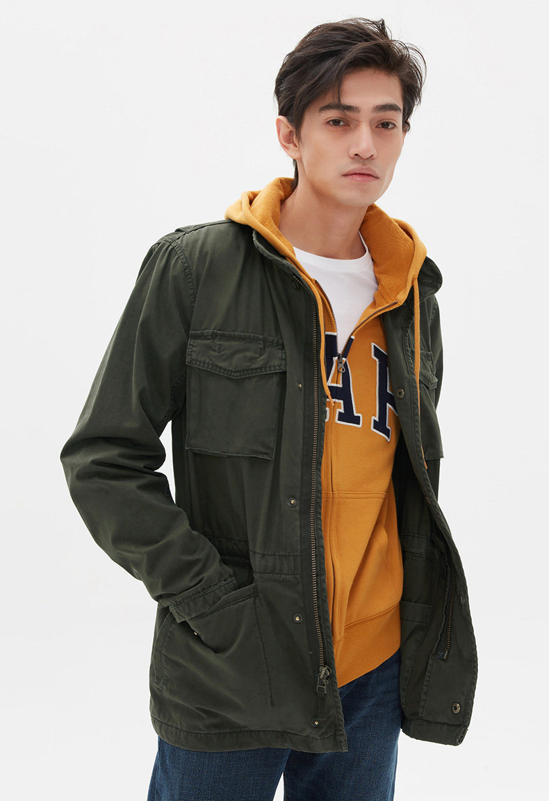 Gap Модная куртка с молнией, хлопковый пуховик, высокий воротник