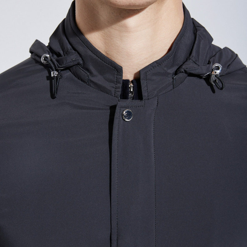 Длинная демисезонная ветрозащитная куртка для отдыха с капюшоном, средней длины, осенняя, облегающий крой