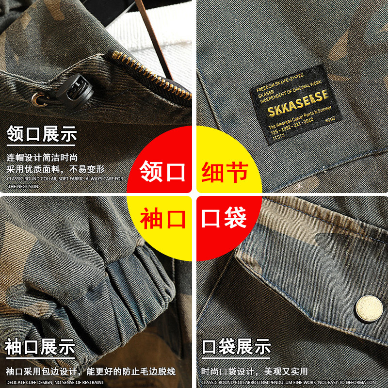 Камуфляжная куртка, демисезонные джинсы с начесом, коллекция 2022, большой размер