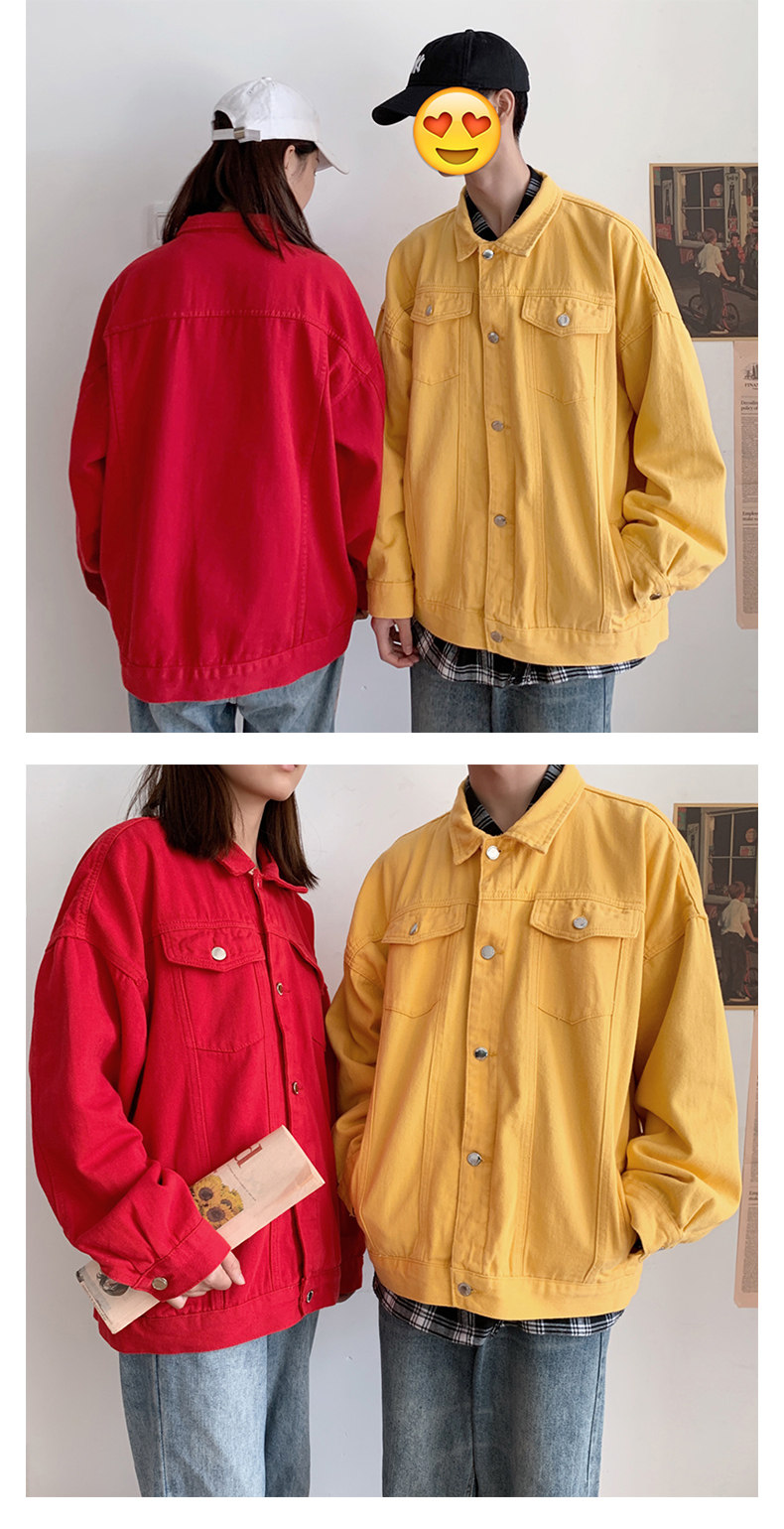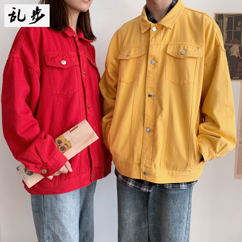 Цветная джинсовая трендовая куртка, парная одежда для отдыха для влюбленных, в корейском стиле