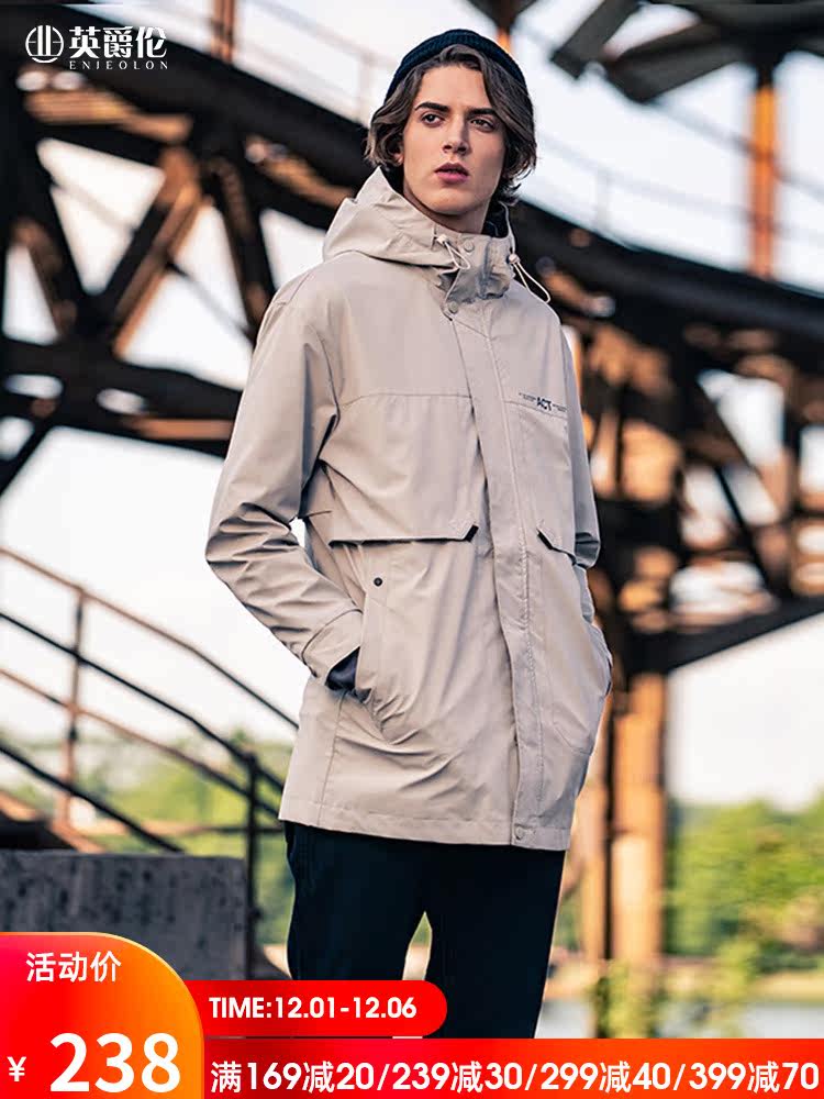 Мужская осенняя куртка, длинный плащ для отдыха с капюшоном, 2020, в корейском стиле, средней длины
