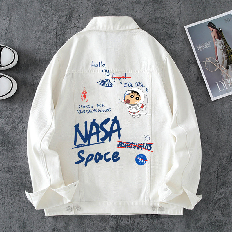 Tide, мелки, космонавт, джинсовая демисезонная куртка подходит для мужчин и женщин для влюбленных, 2020