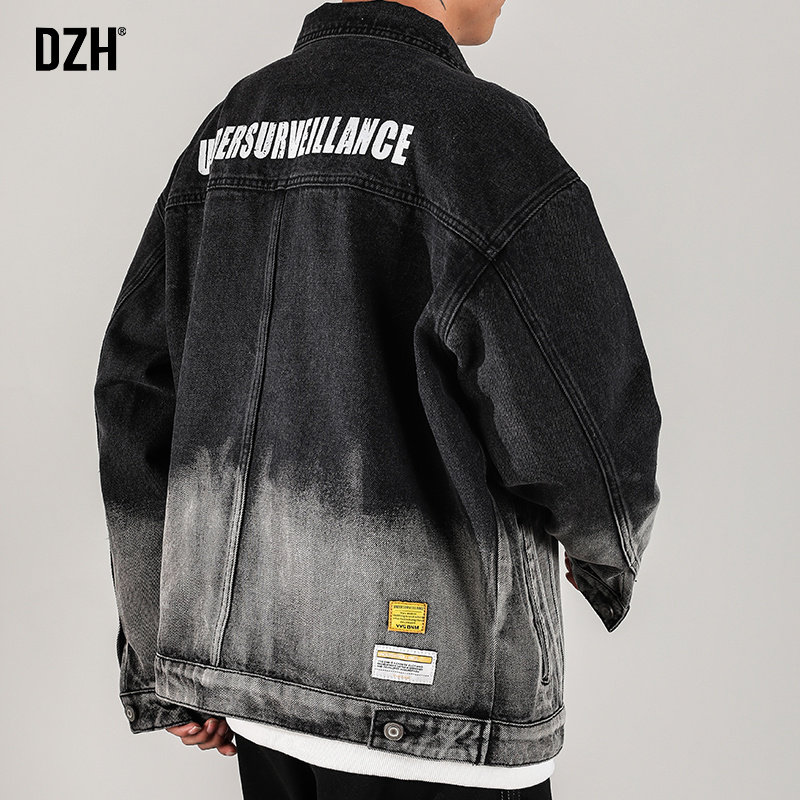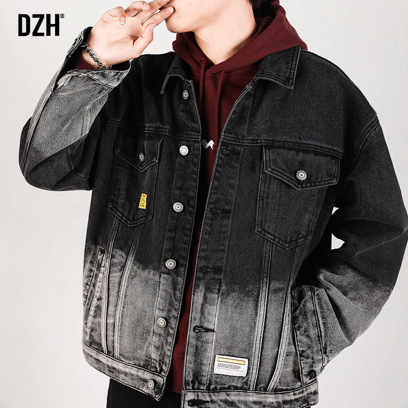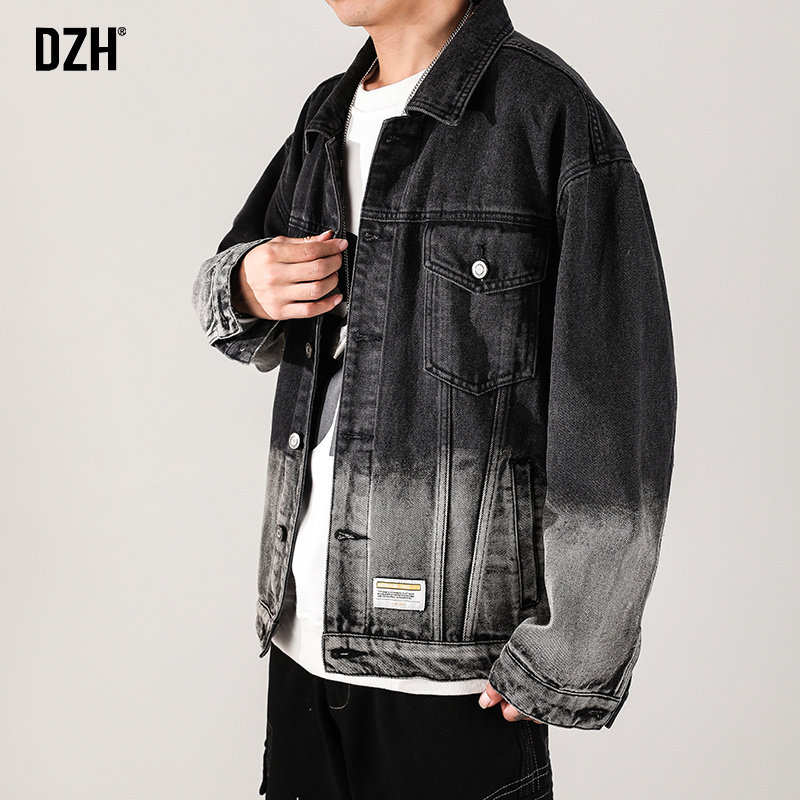 Джинсовая мужская осенняя трендовая универсальная японская ретро куртка для отдыха, градиент, свободный крой