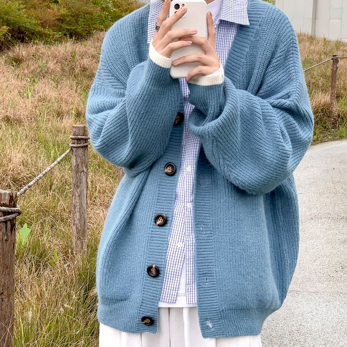 Демисезонный трикотажный кардиган, свитер, трендовая куртка, большой размер, в корейском стиле
