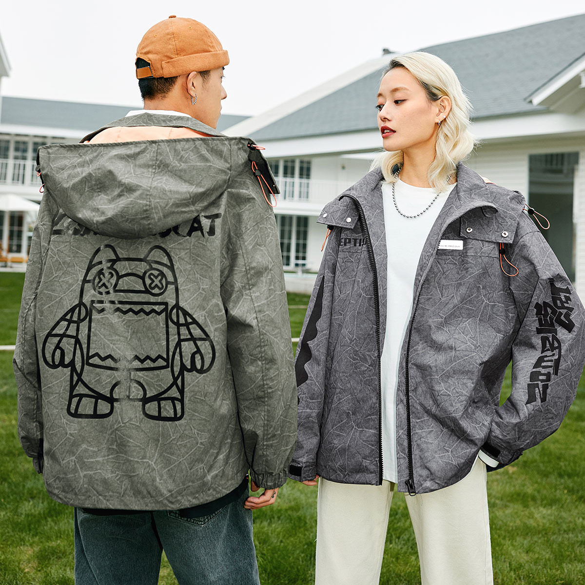 Осенняя куртка с капюшоном, парная одежда для влюбленных, принт