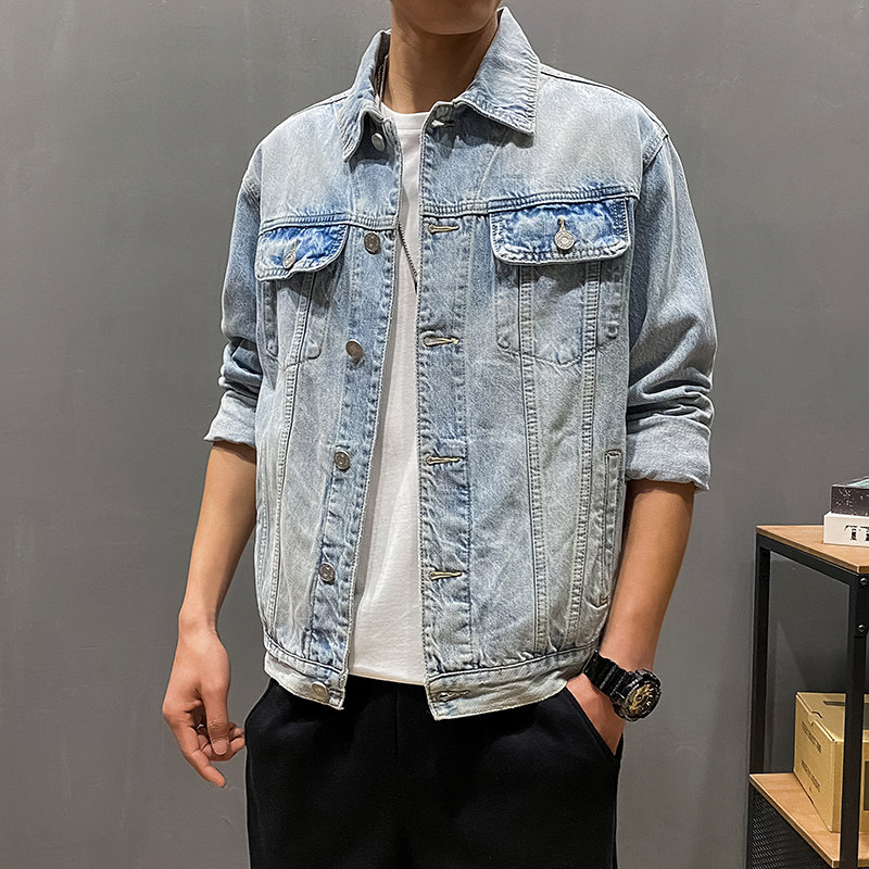 Джинсовая мужская трендовая осенняя короткая светлая куртка для отдыха, в корейском стиле