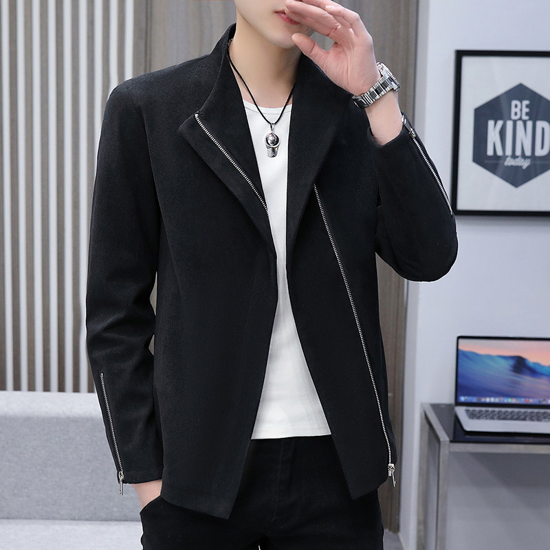 Мужская осенняя демисезонная трендовая короткая бархатная брендовая весенняя куртка, в корейском стиле