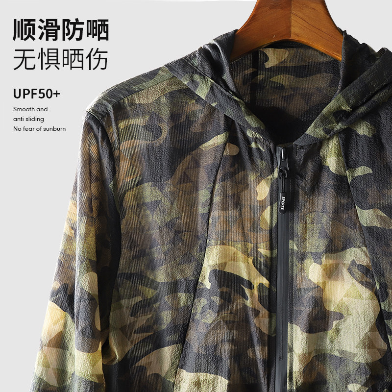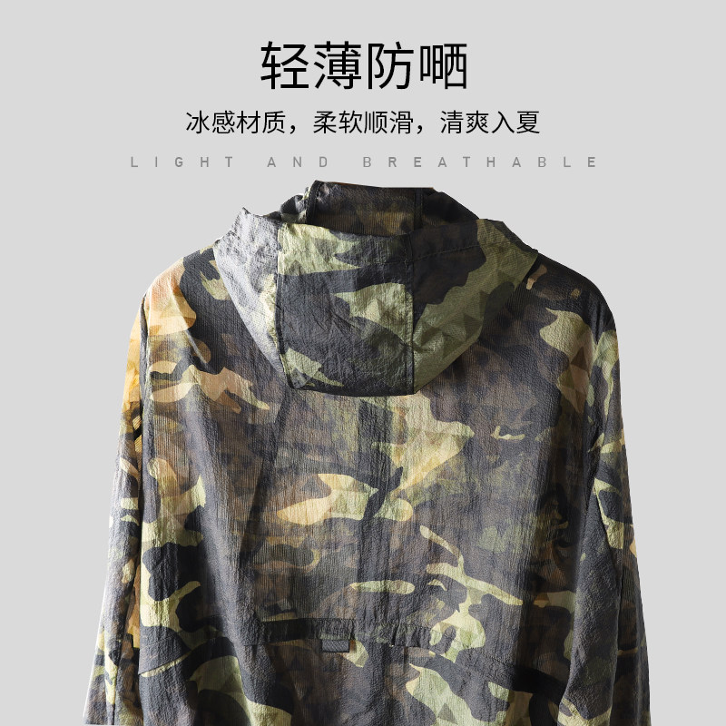 Мужская трендовая камуфляжная ультратонкая одежда для защиты от солнца для отдыха, дышащая летняя шелковая куртка