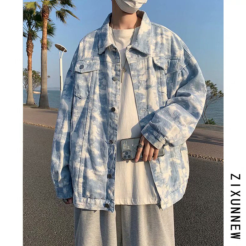Джинсы, мужская трендовая осенняя куртка для отдыха, осенние, в корейском стиле, оверсайз