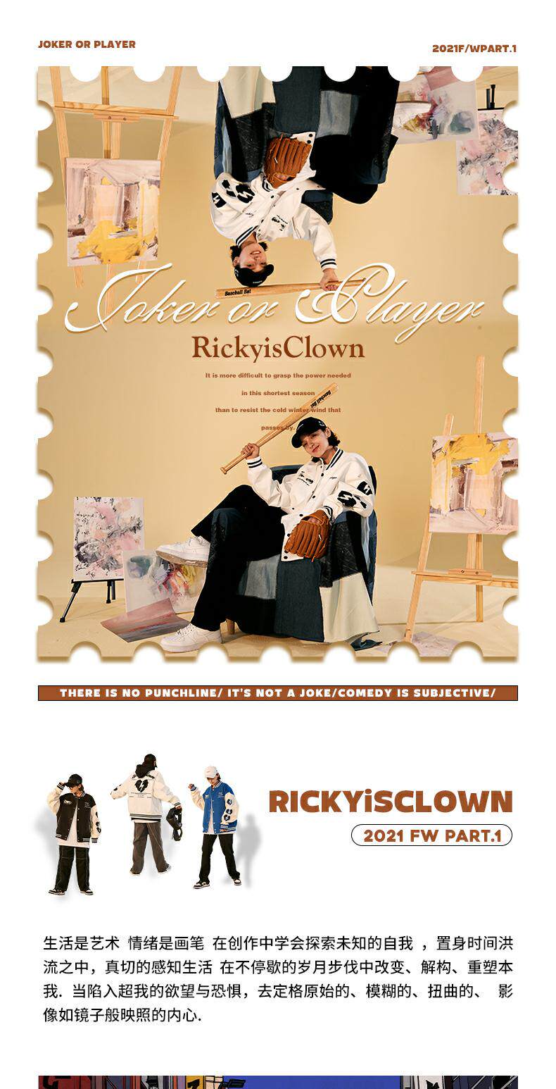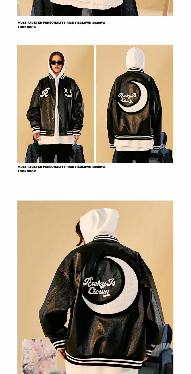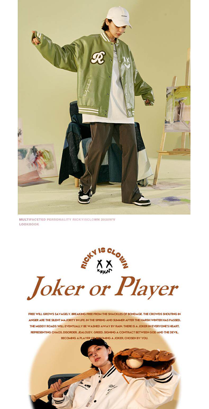 Rickyisclow шутка Ric Clown Moon Body Body Baseball Baseball Jacket Внешнее мужское национальное бренд Tide