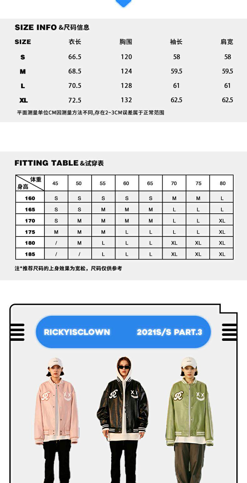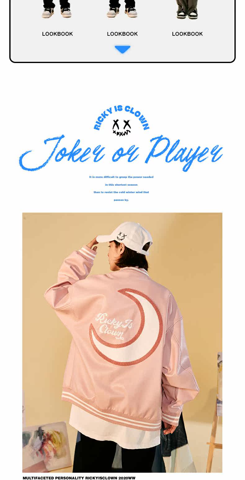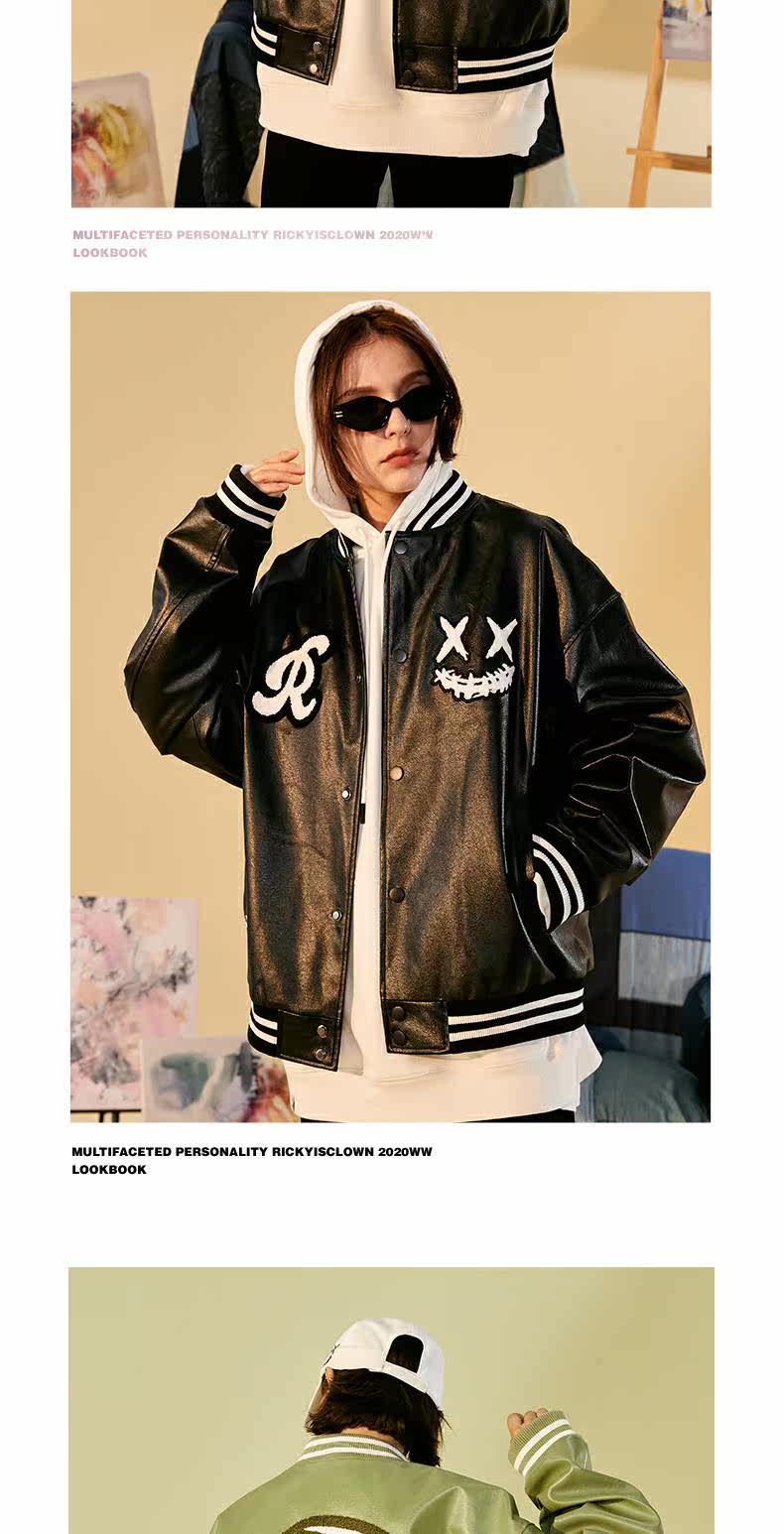 Rickyisclow шутка Ric Clown Moon Body Body Baseball Baseball Jacket Внешнее мужское национальное бренд Tide