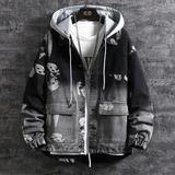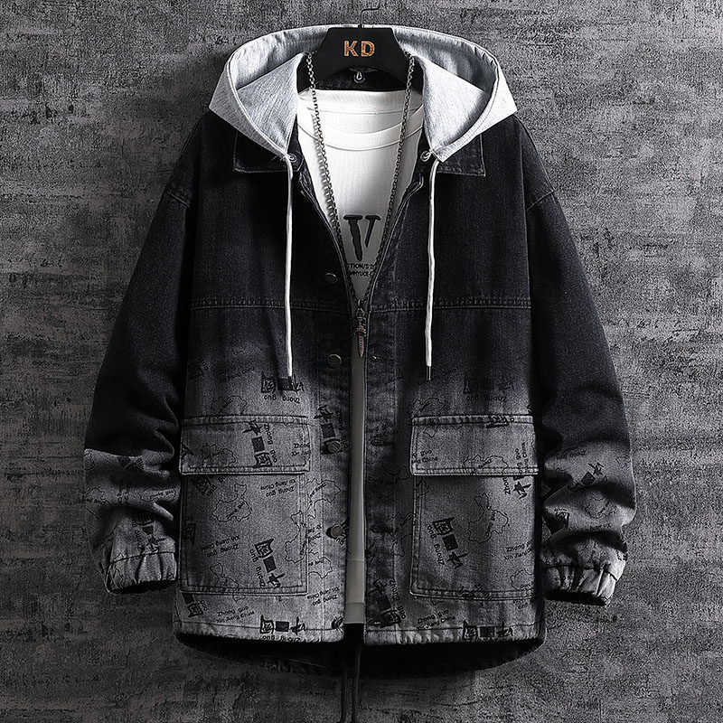 Джинсовая мужская демисезонная куртка, трендовая униформа медсестры с капюшоном, утепленный зимний пуховик, подходит для подростков, оверсайз