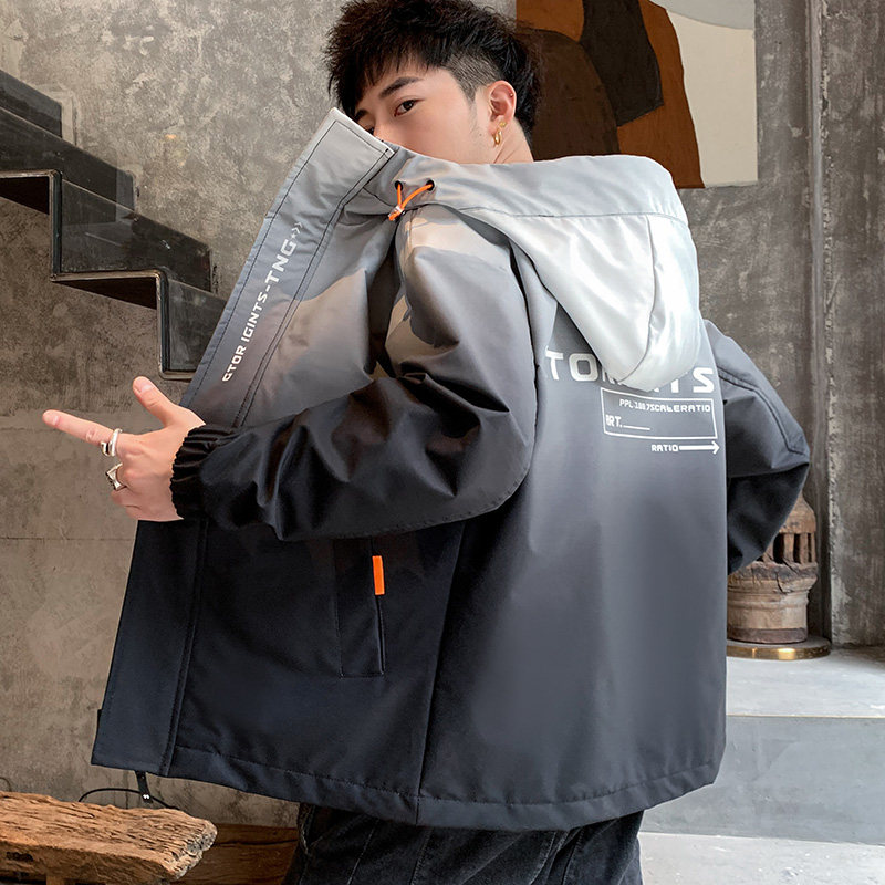 Tide, весенняя осенняя трендовая куртка с капюшоном, средней длины, оверсайз, градиент