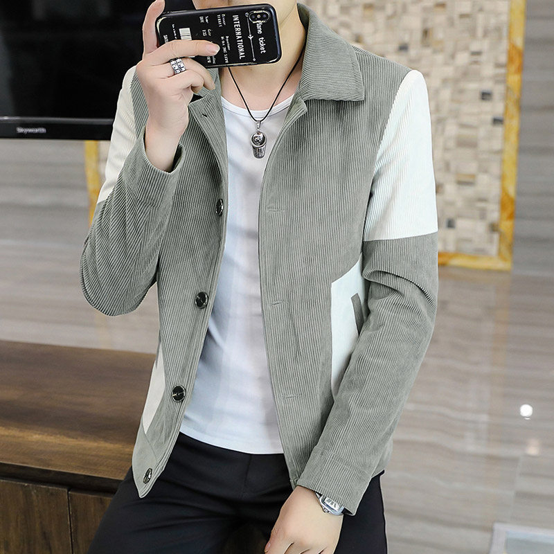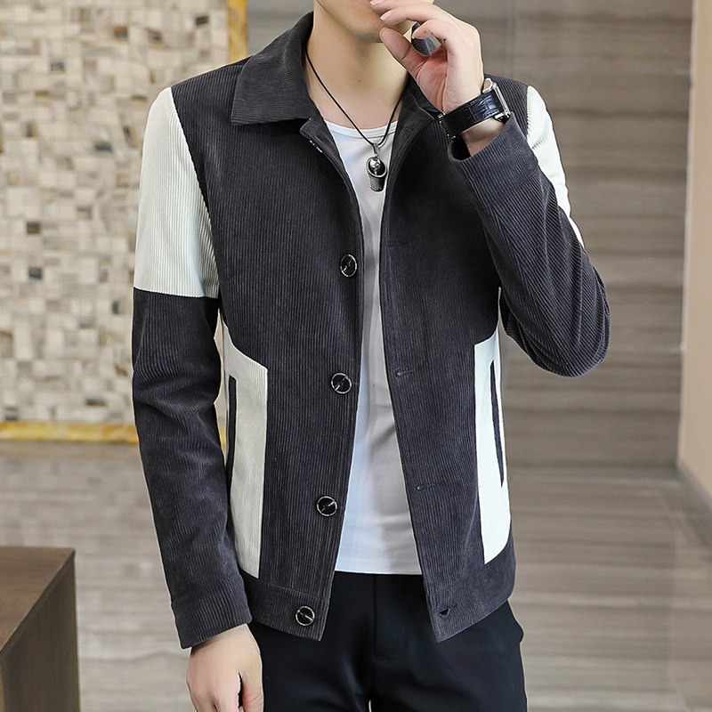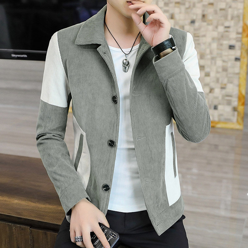 Демисезонная утепленная трендовая вельветовая мужская куртка для отдыха, в корейском стиле, облегающий крой
