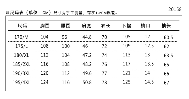 | Размер: | 170/м [предложение 95-125 Catties], 175/L [предложение 125-145 Catties], 180/xl [Предложение 145-160 Catties], 185/xxl [предложение 160-175 Catties], 190/xxxl [предложение 175-190 Catties] |