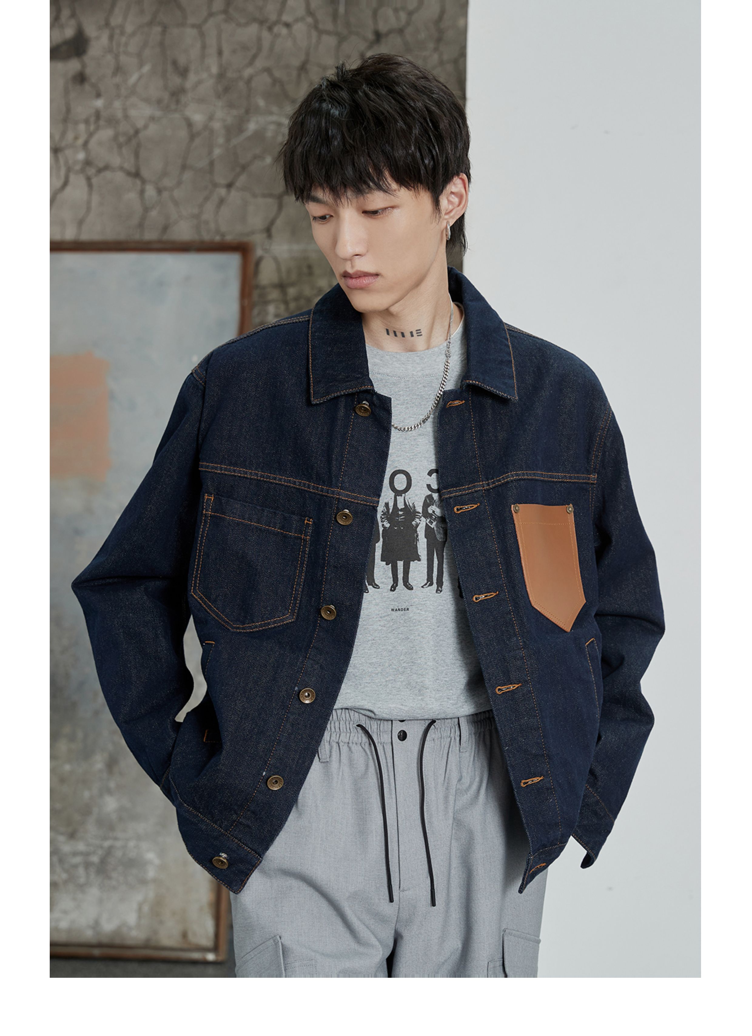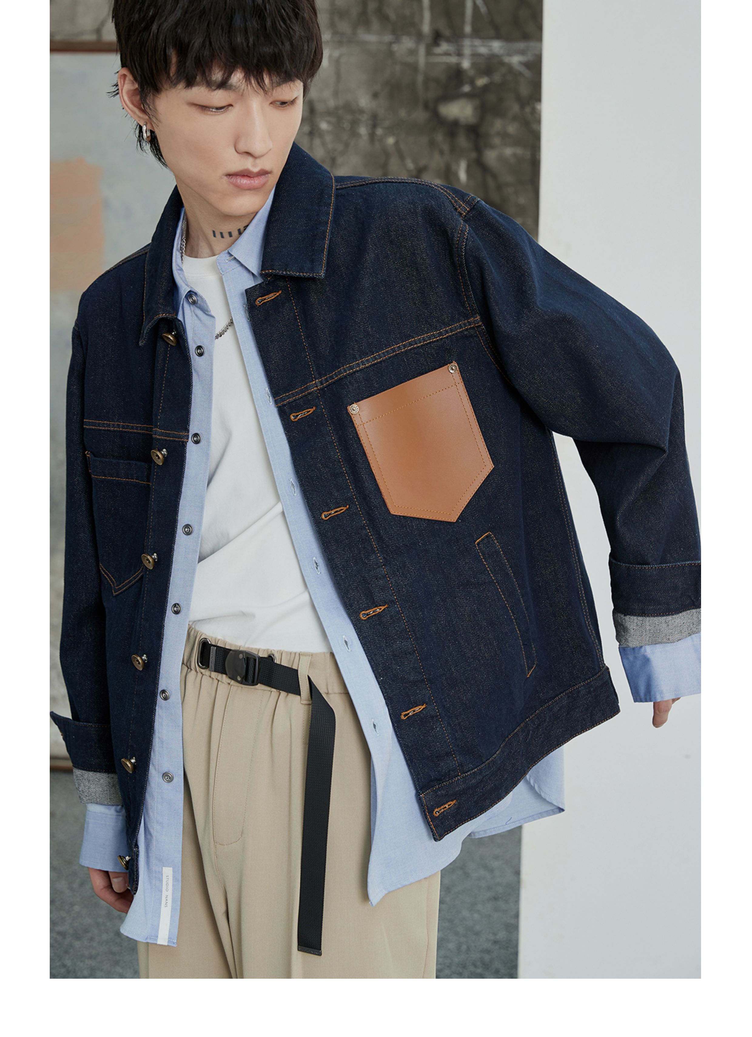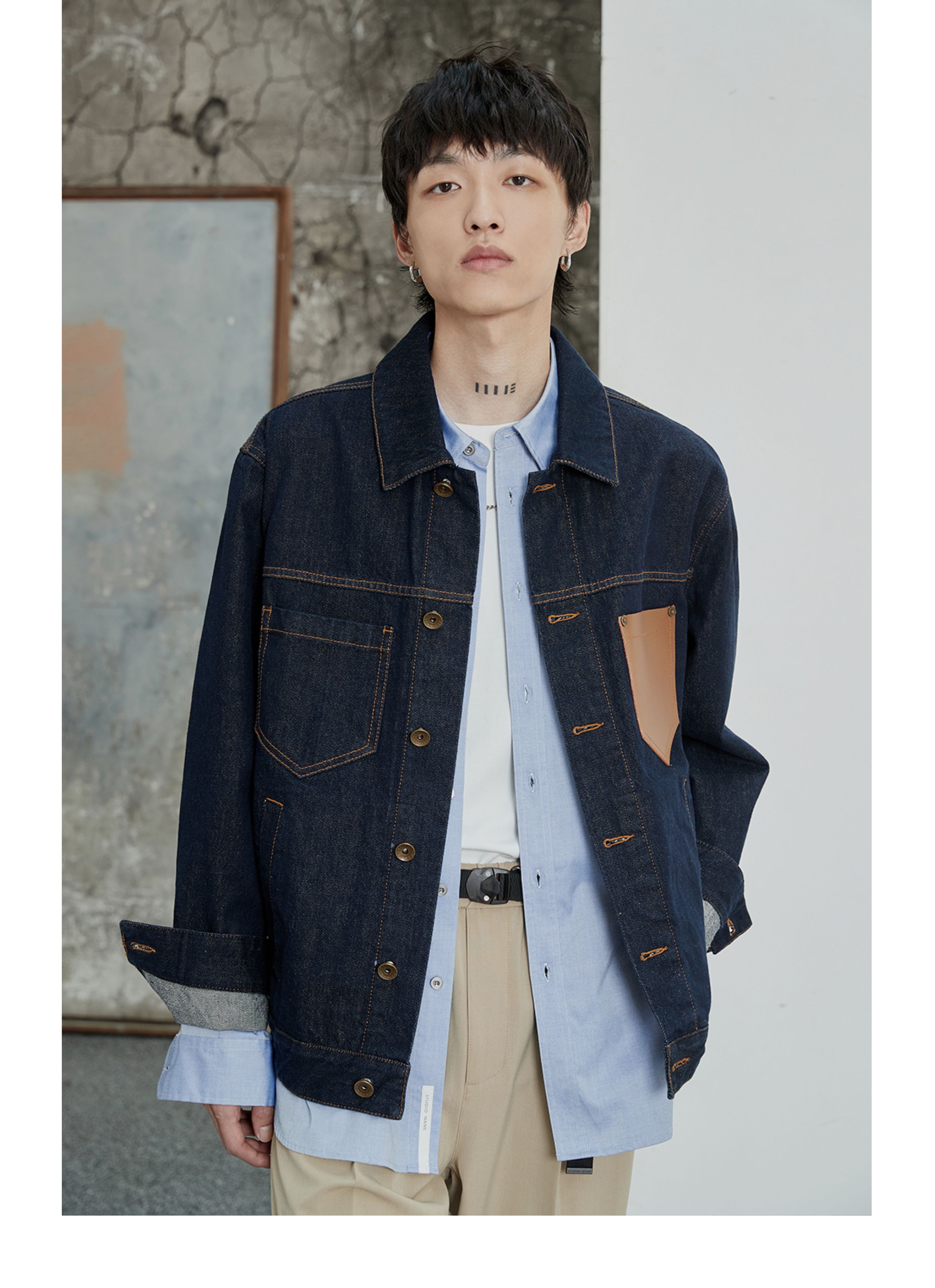 NANS, джинсовая кожаная классическая куртка, воловья кожа