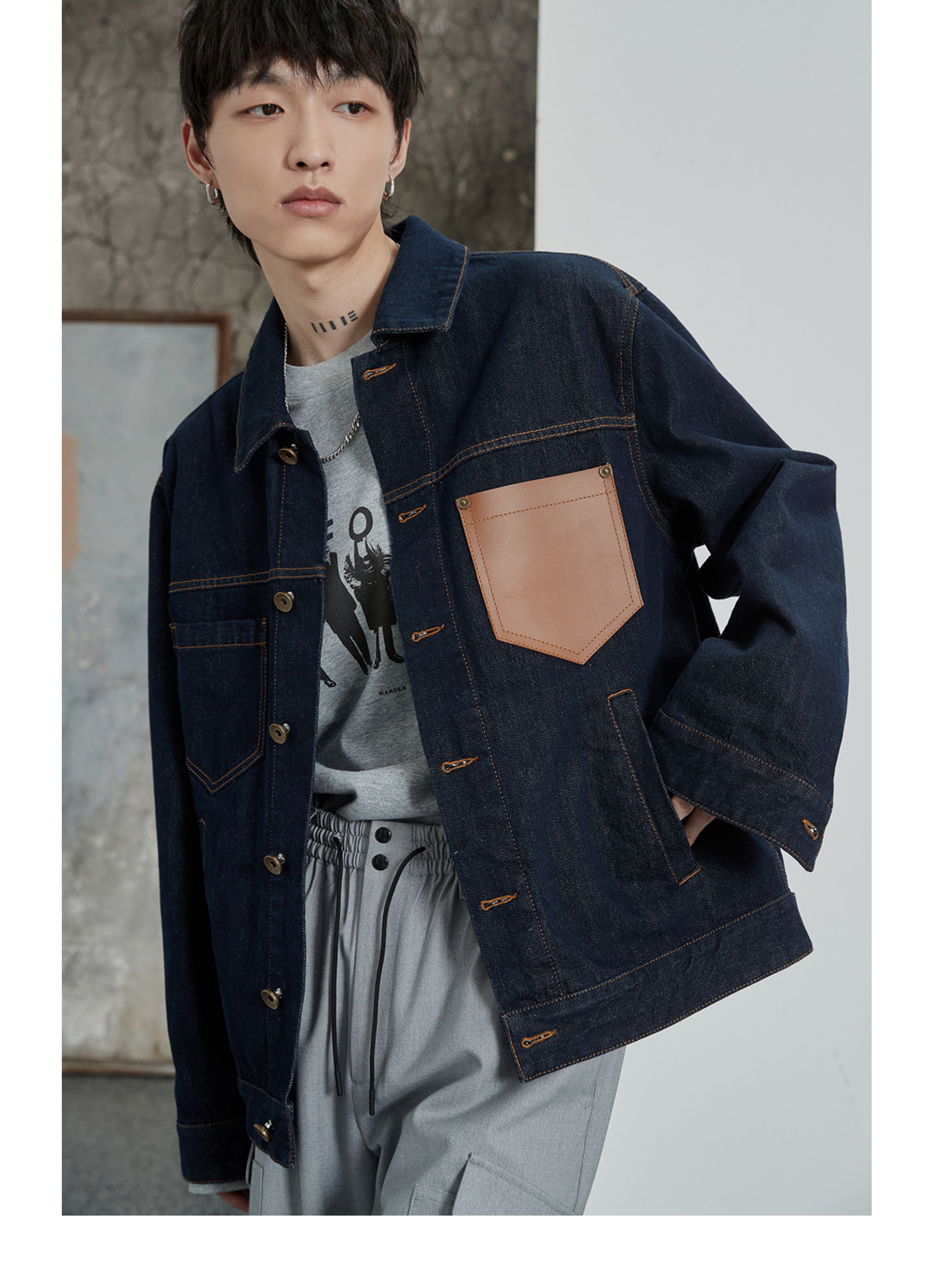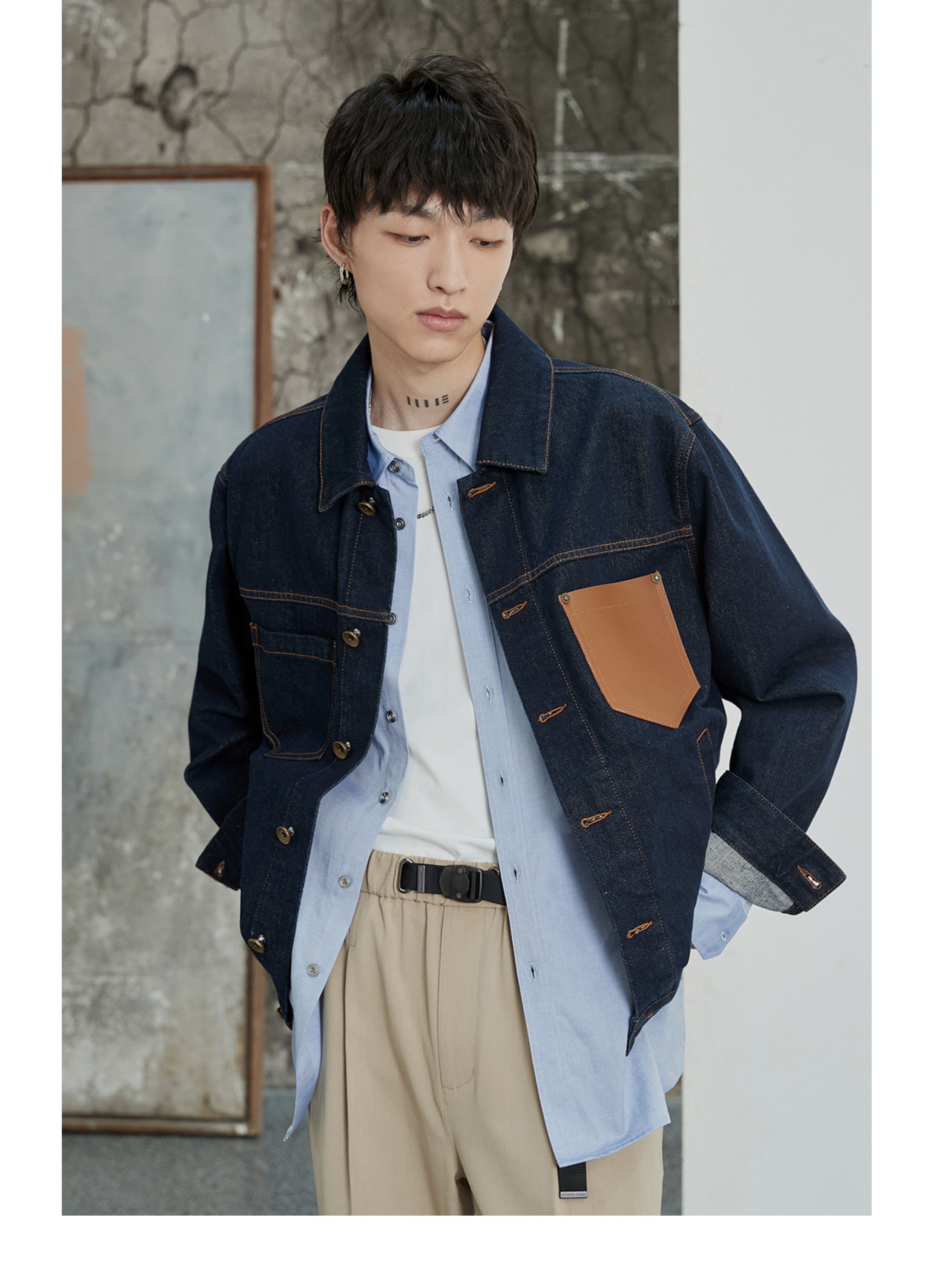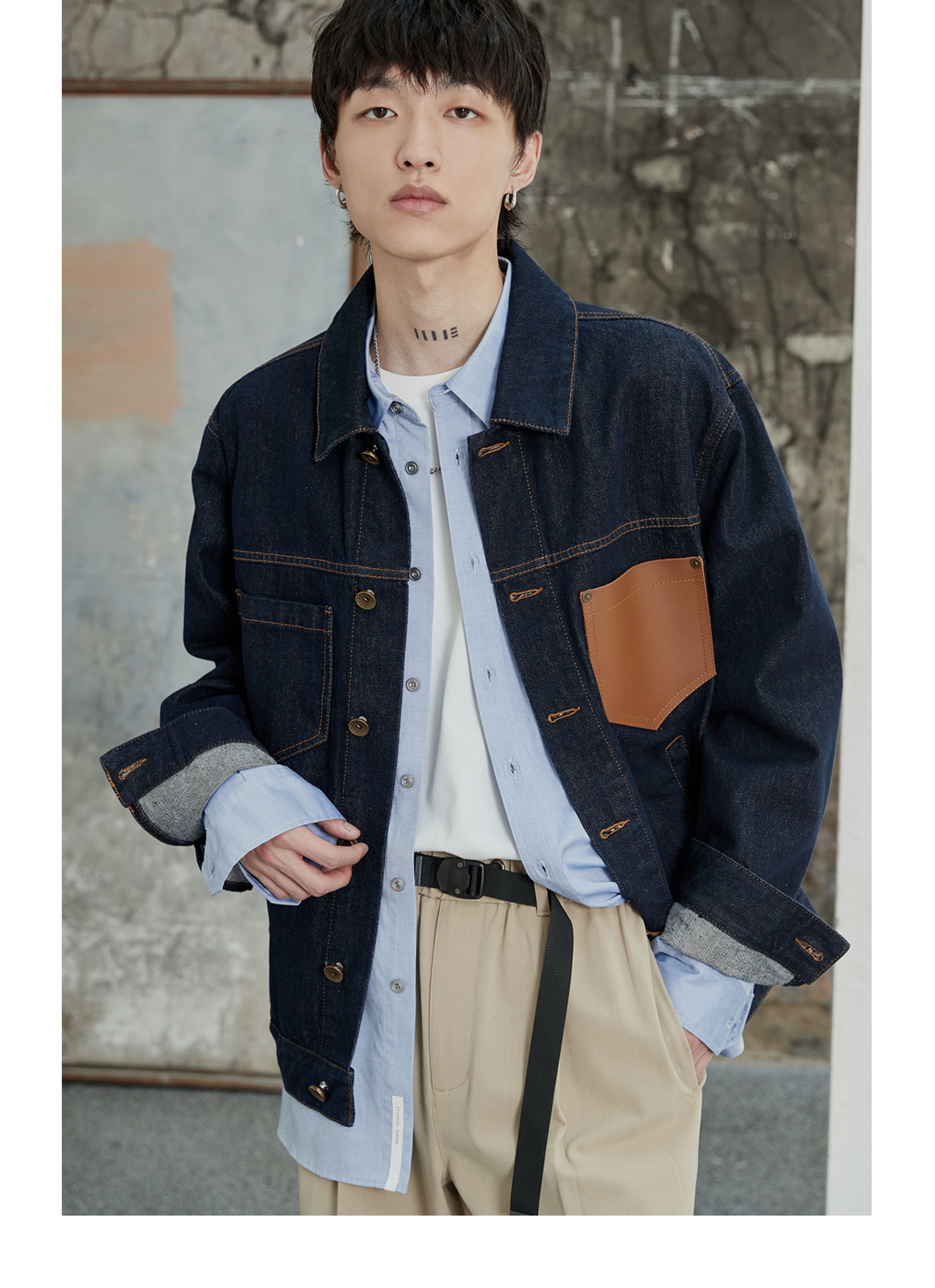 NANS, джинсовая кожаная классическая куртка, воловья кожа