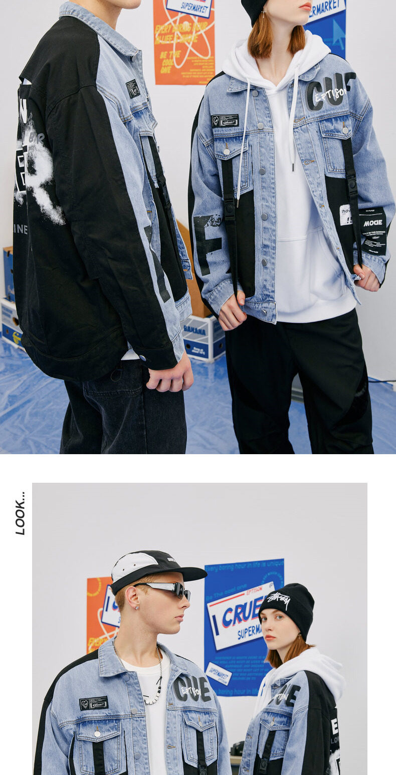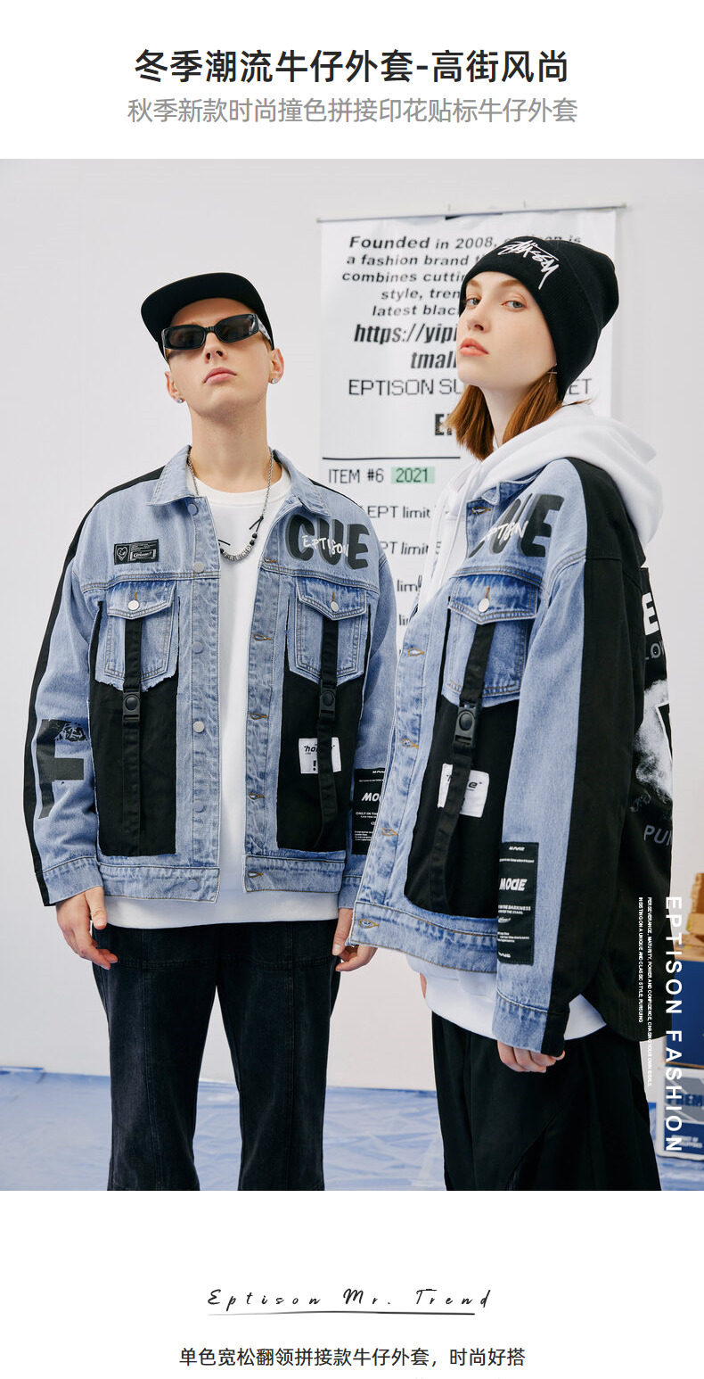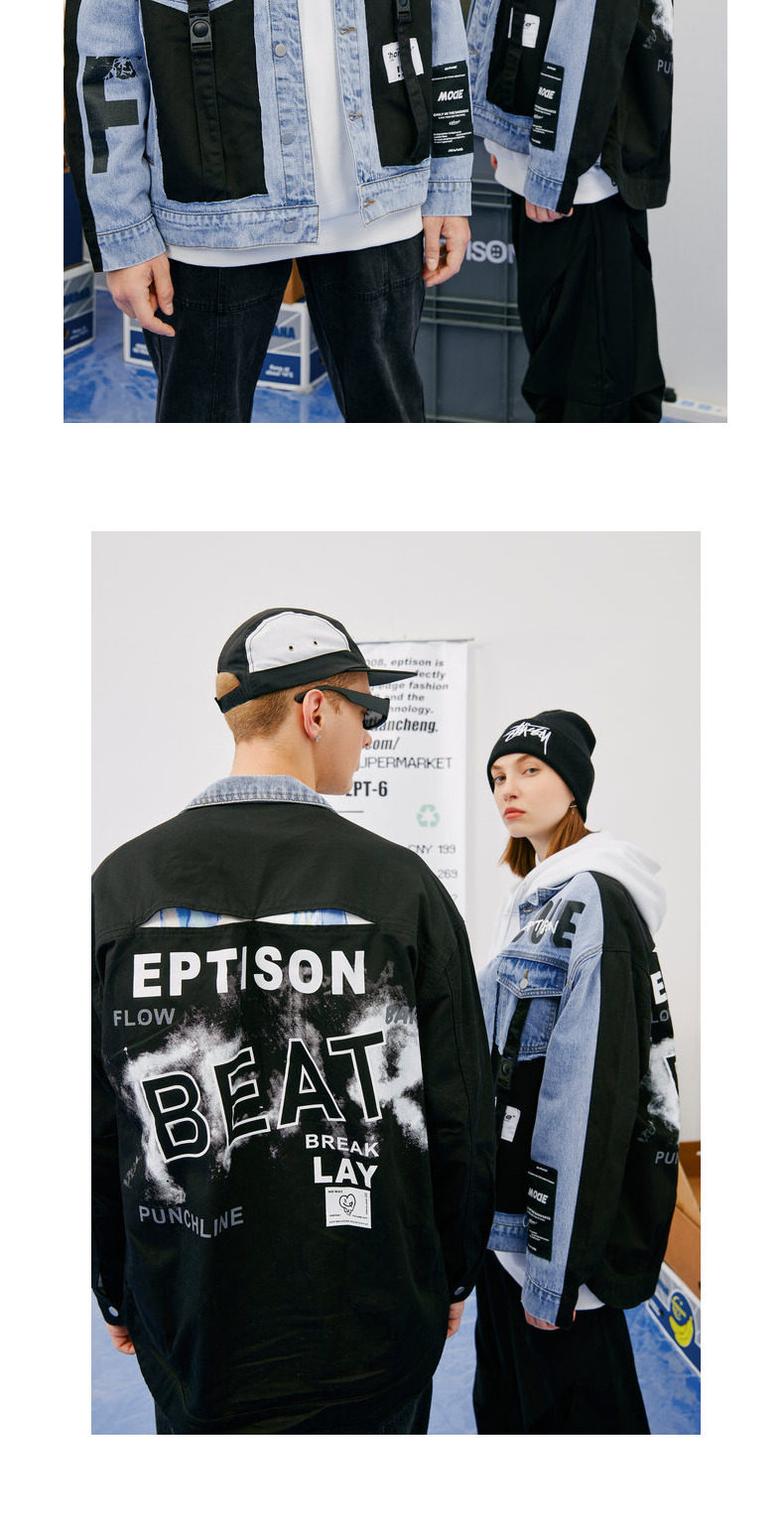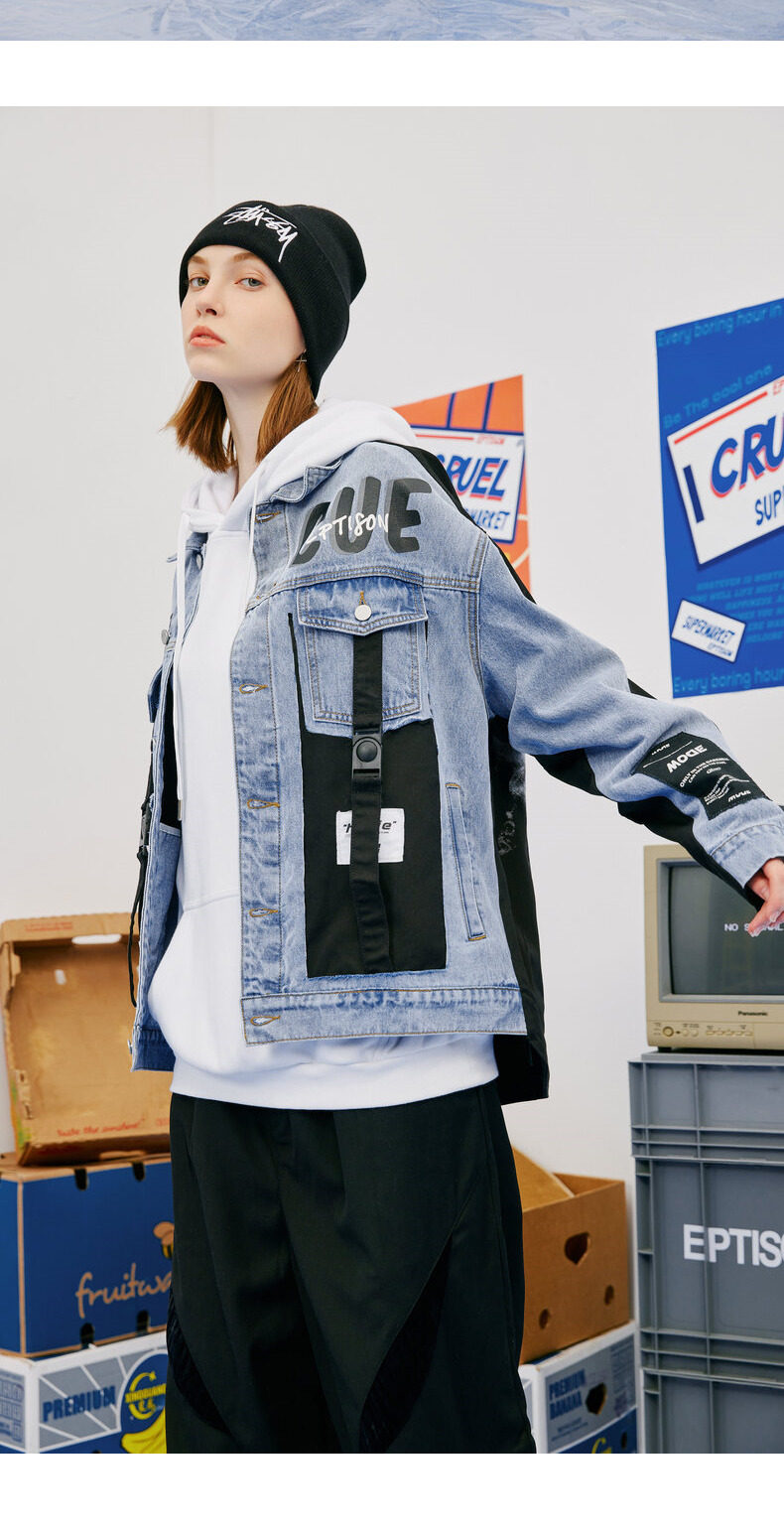Зимняя джинсовая куртка, принт