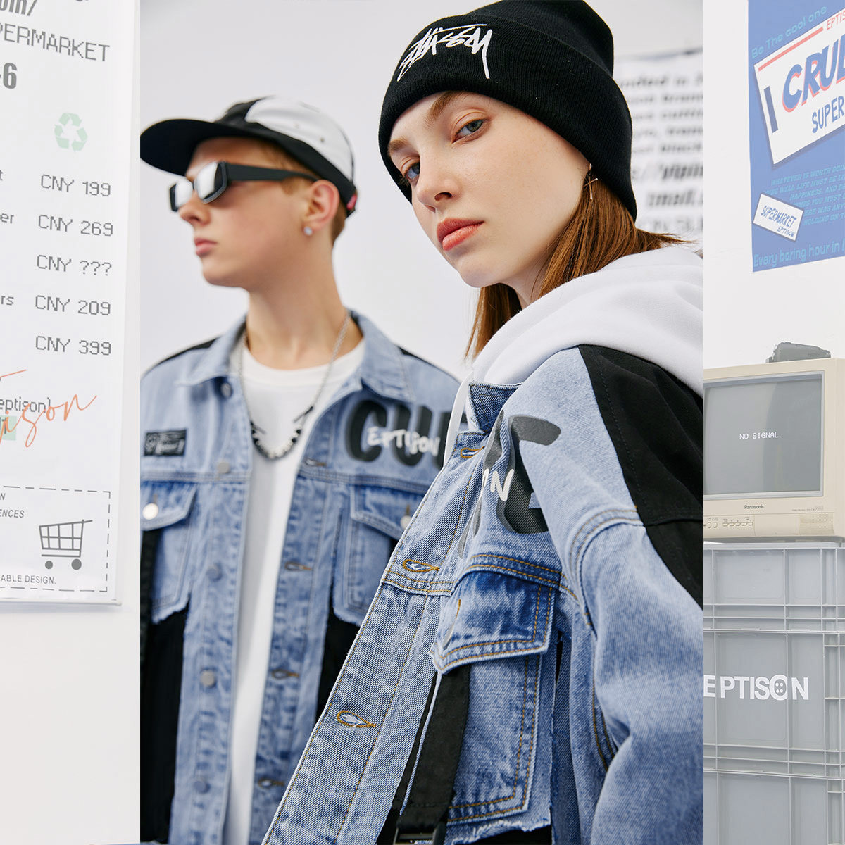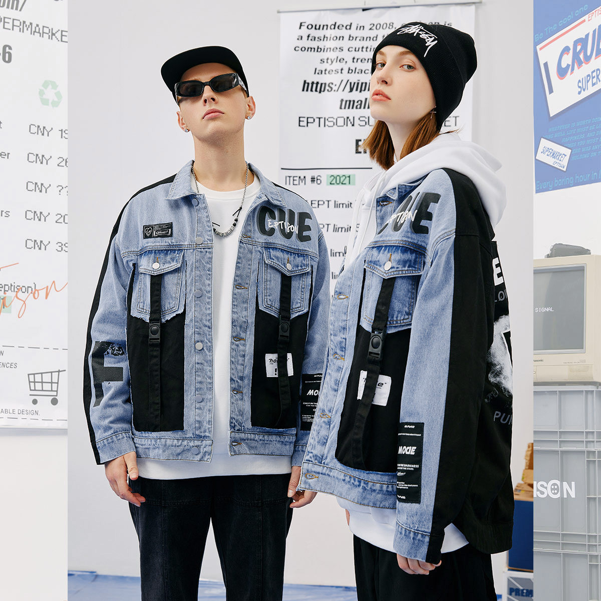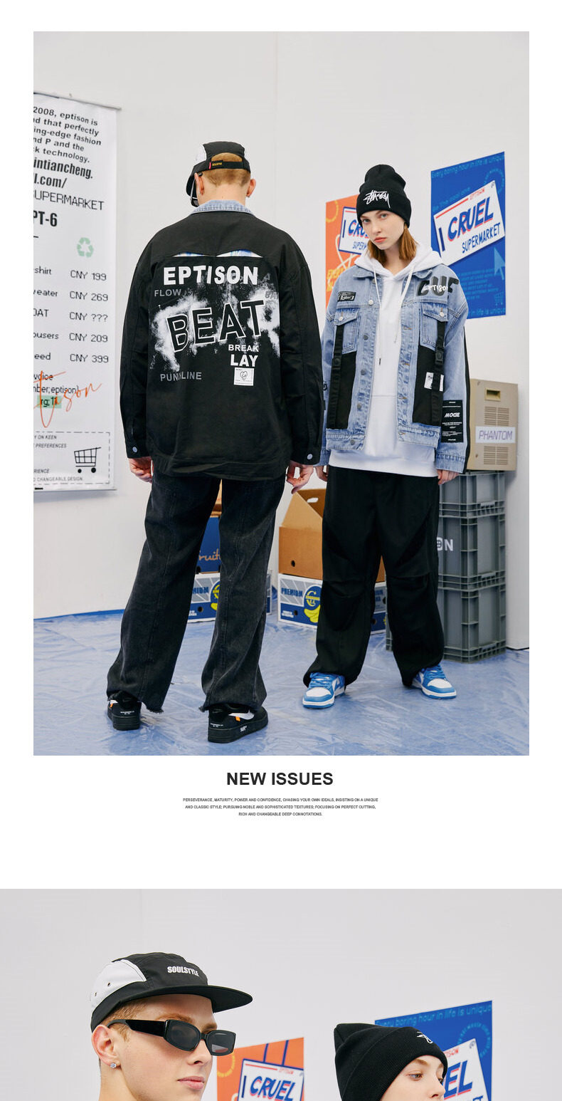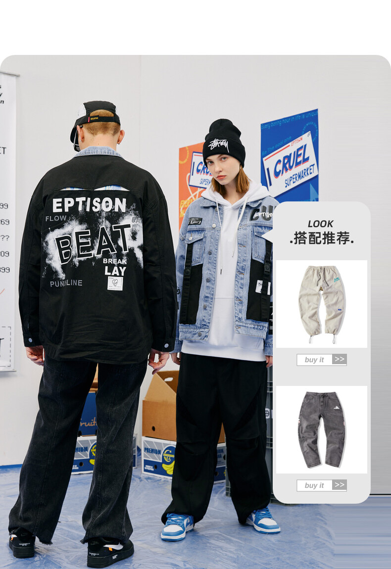 Зимняя джинсовая куртка, принт