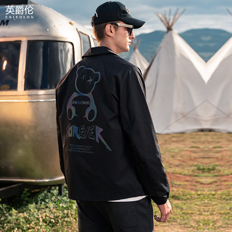 Yingjuerun лазерная куртка с принтом медведя, мужская осенняя модная брендовая куртка на заказ для красивых мальчиков, мужской топ, уличный топ