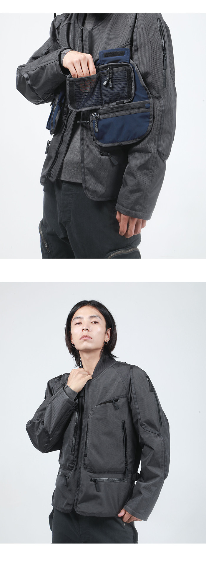 Mkszy Three House 00aw Pocket Bomber Многоуровневый четырехсторонний бронированный локомотивной куртки и красивый мужской прилив
