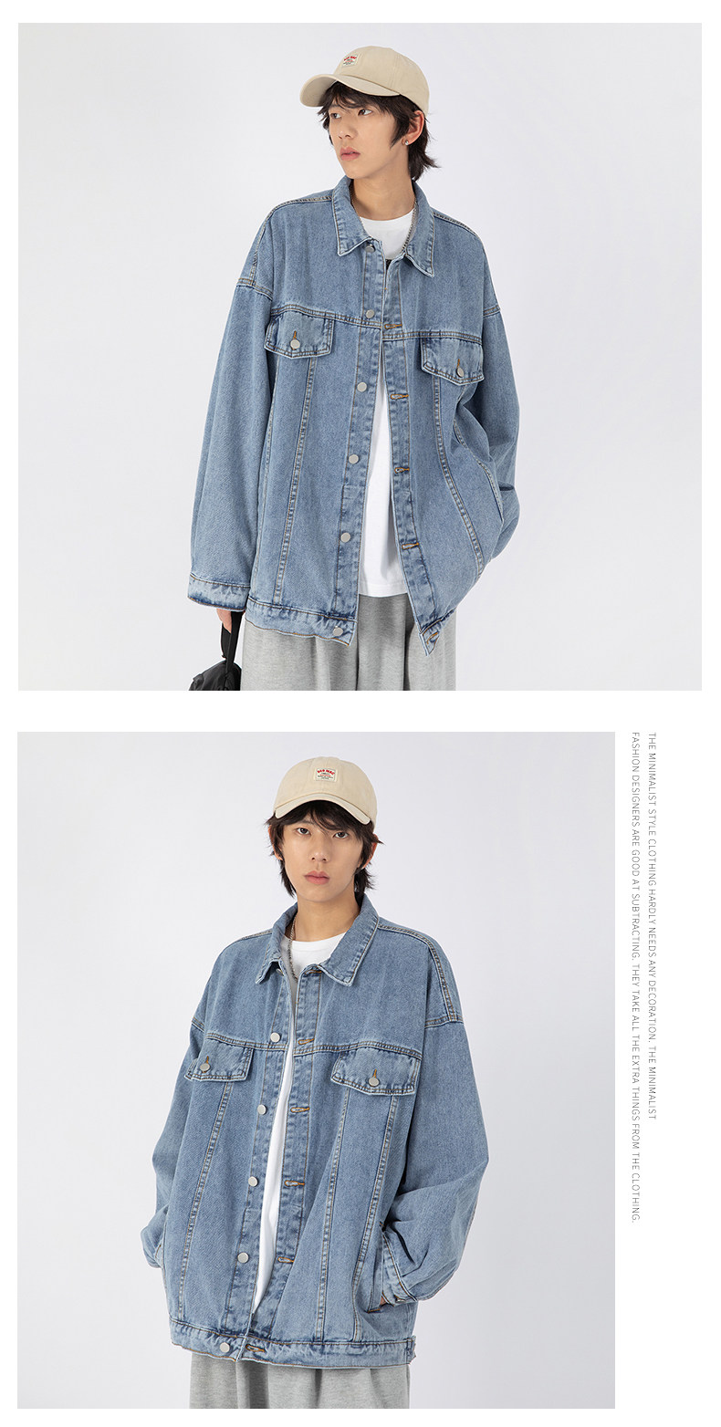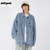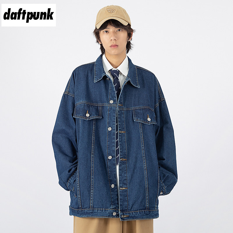 Синяя джинсовая мужская трендовая летняя ретро куртка для влюбленных, в американском стиле, в корейском стиле, оверсайз