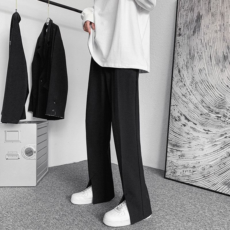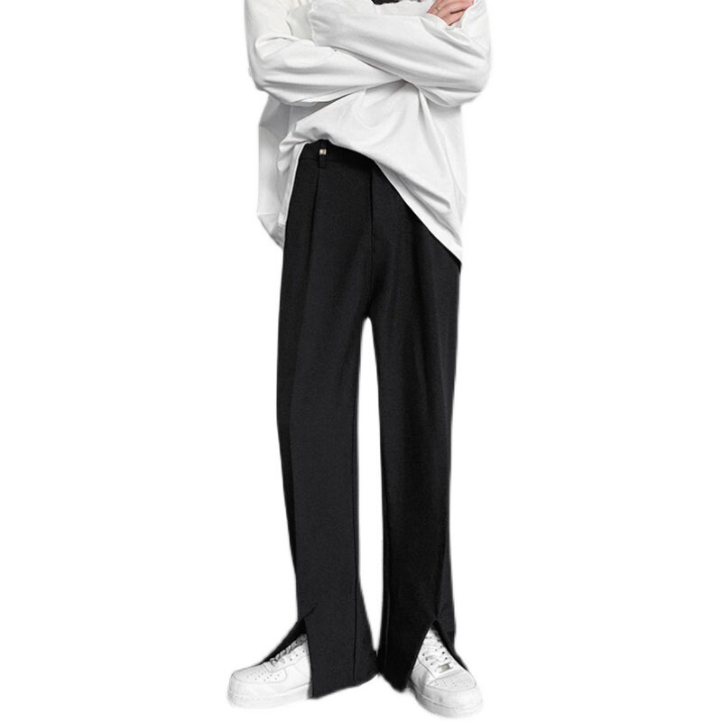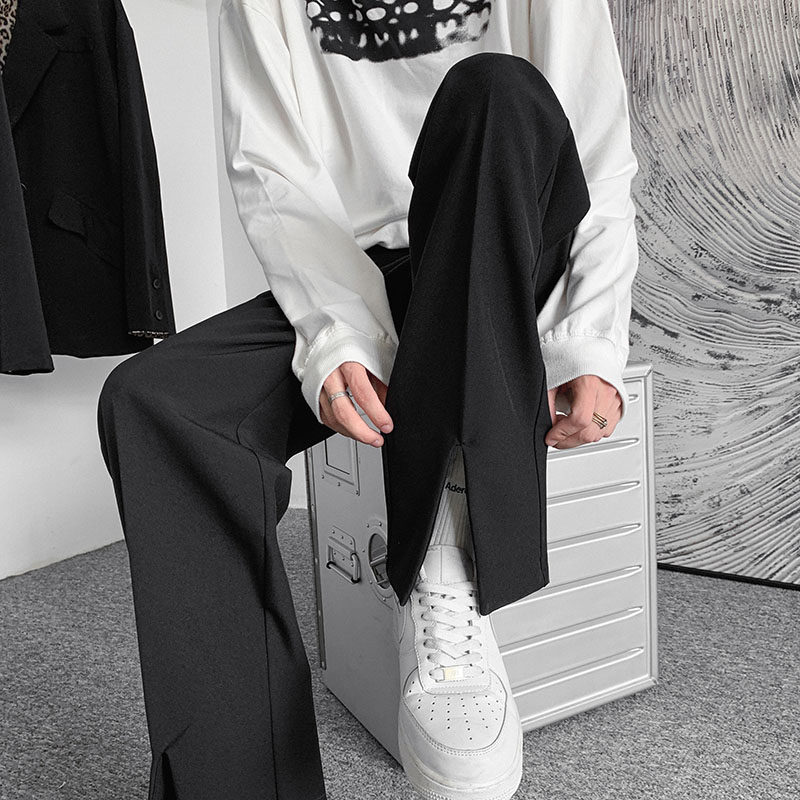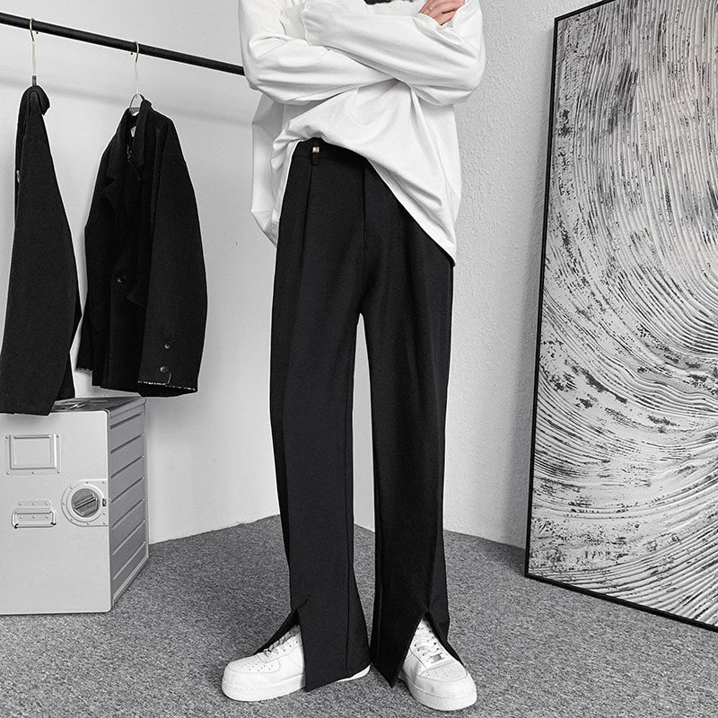 Костюм, дизайнерские штаны, изысканный стиль, тренд сезона, в корейском стиле, свободный прямой крой