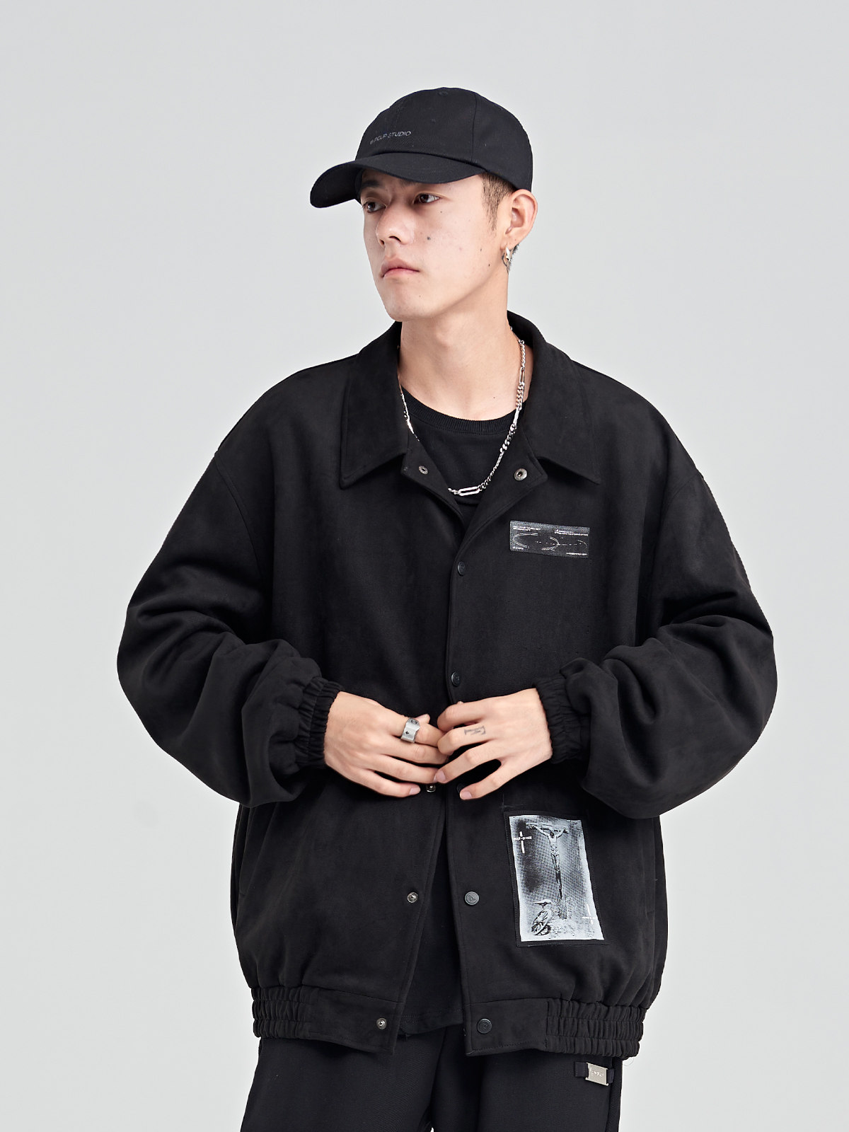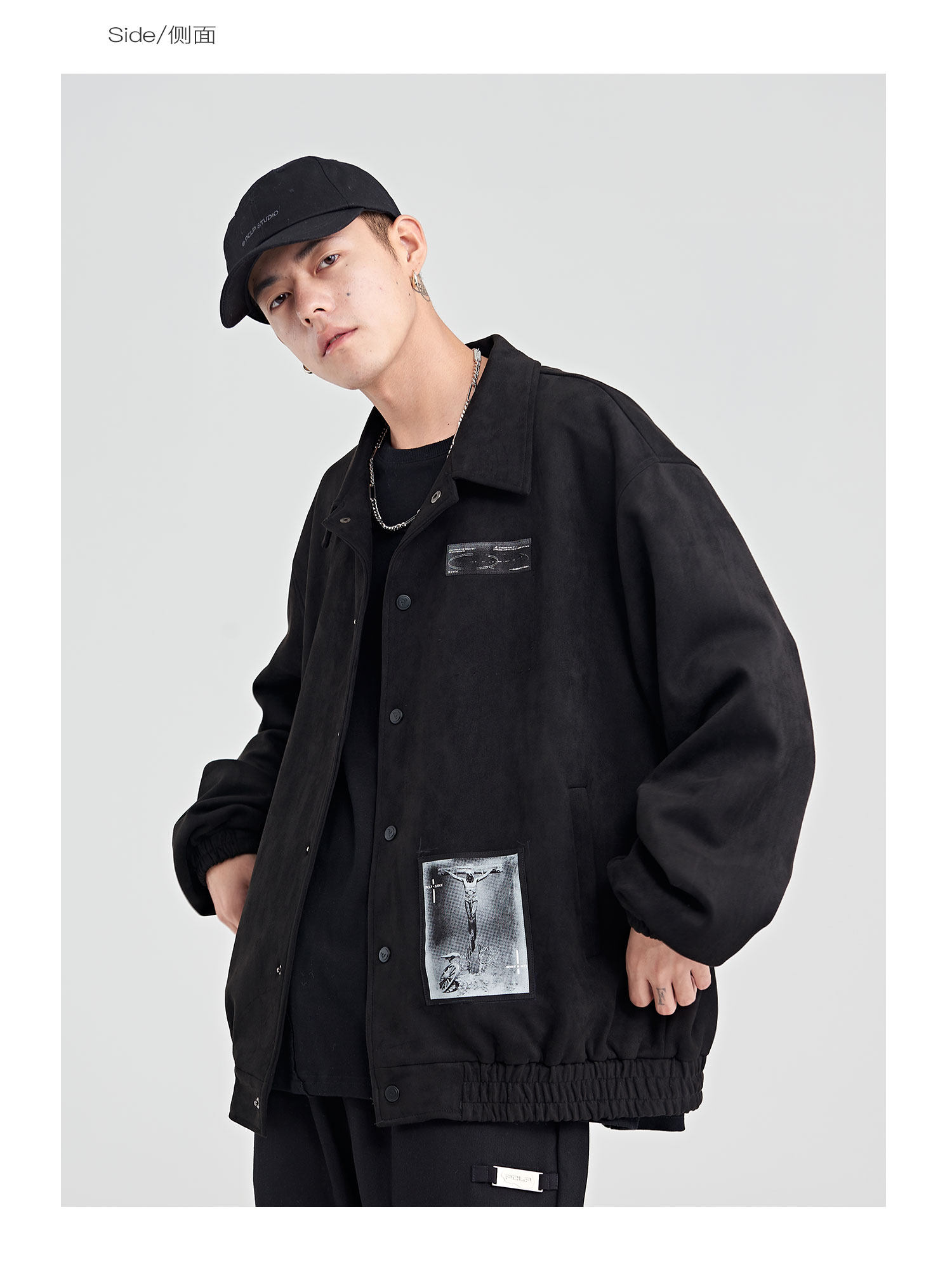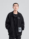 Наклейки, пластырь, зимняя черная ретро мужская куртка для отдыха, этнический стиль, свободный крой, в американском стиле