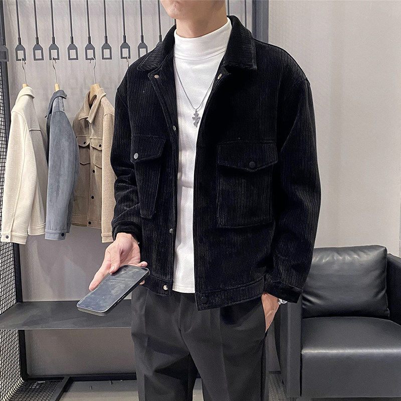 Демисезонное вельветовое мужское короткое шерстяное пальто, трендовая куртка для отдыха, увеличенная толщина, облегающий крой