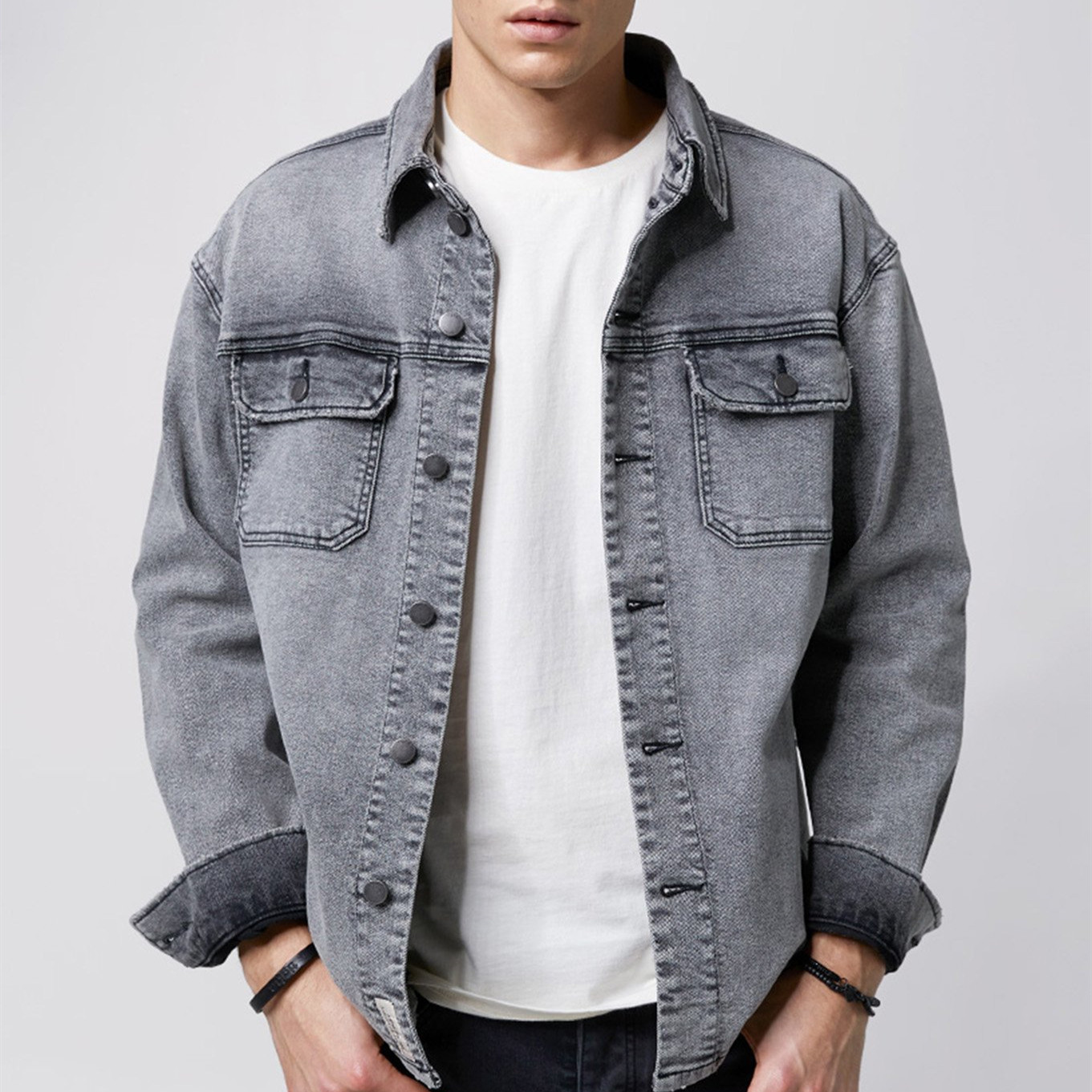 Осенняя металлическая джинсовая куртка