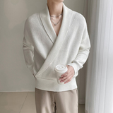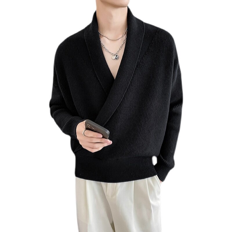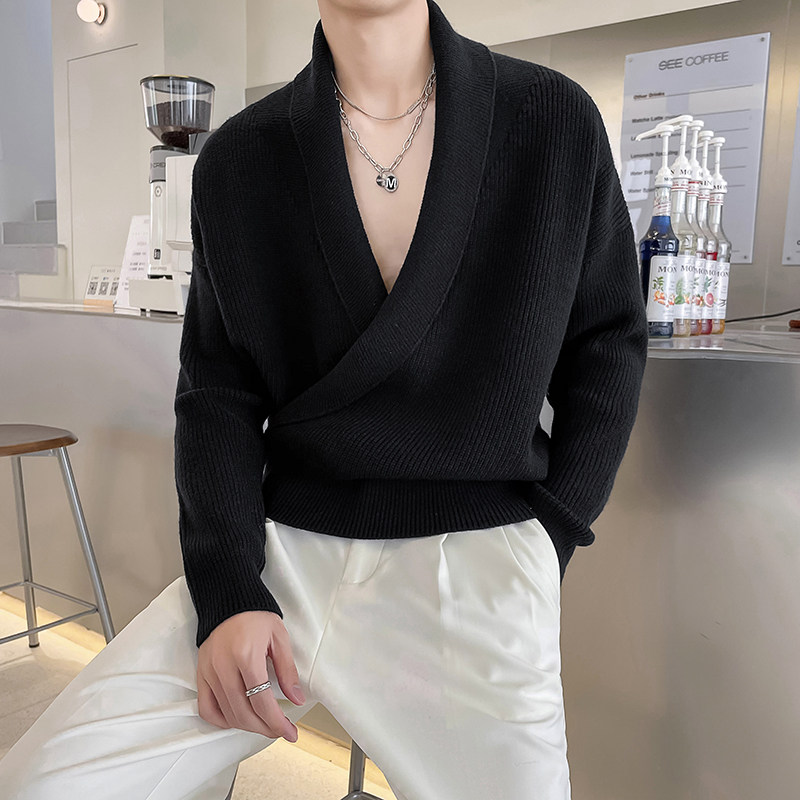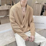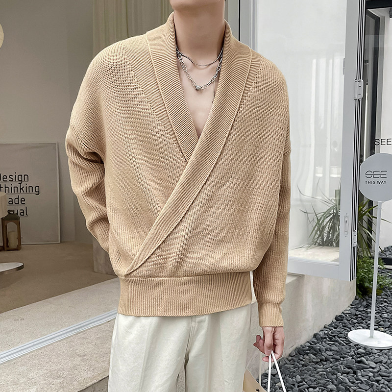 Дизайнерский трикотажный свитер, куртка, осенний, тренд сезона, V-образный вырез, в корейском стиле, свободный крой