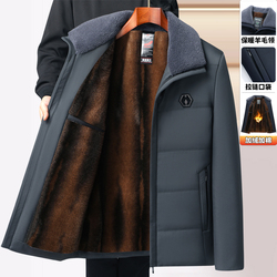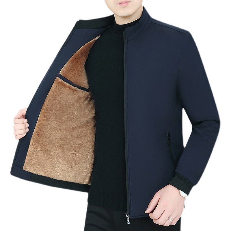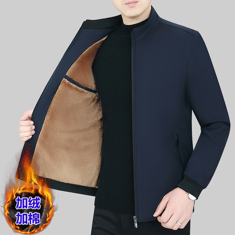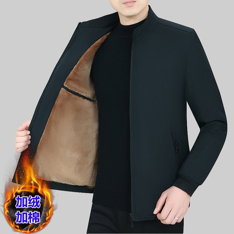 Утепленная куртка, демисезонный бархатный пуховик, для мужчины среднего возраста