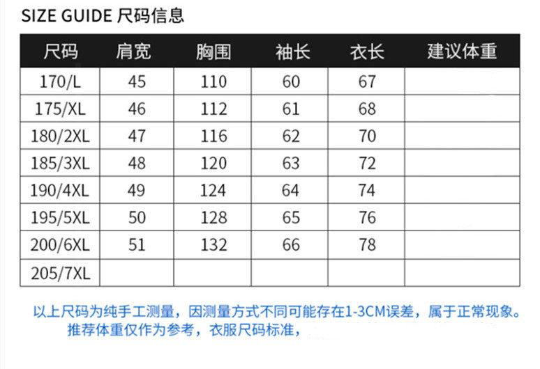 | Размер: | 170/л рекомендуется 90-110 кот, 175/XL рекомендуется 1055-120 кот, 180/2xl предложил 120-135 кот, 185/3XL Предложение 135-155 Catties, 190/4xl Предложение 155-170 Catties, 195/5xl Предложение 170-185 Catties |
