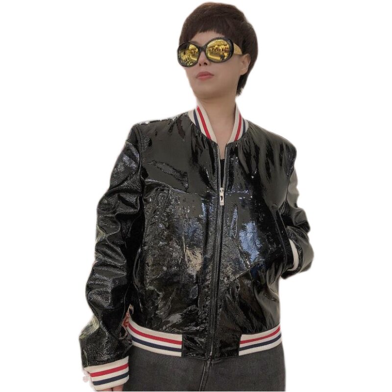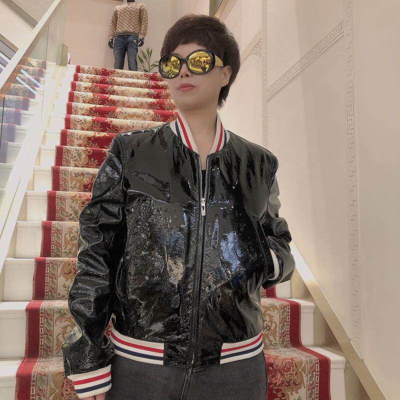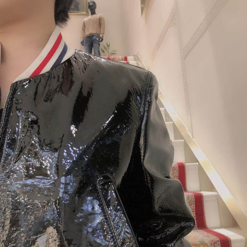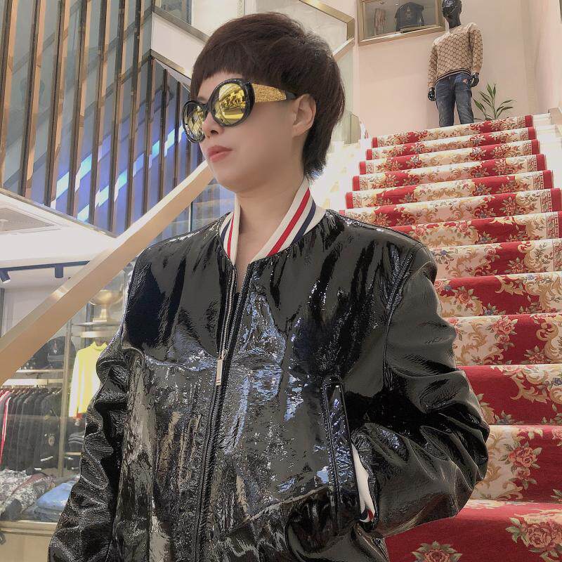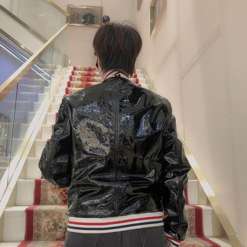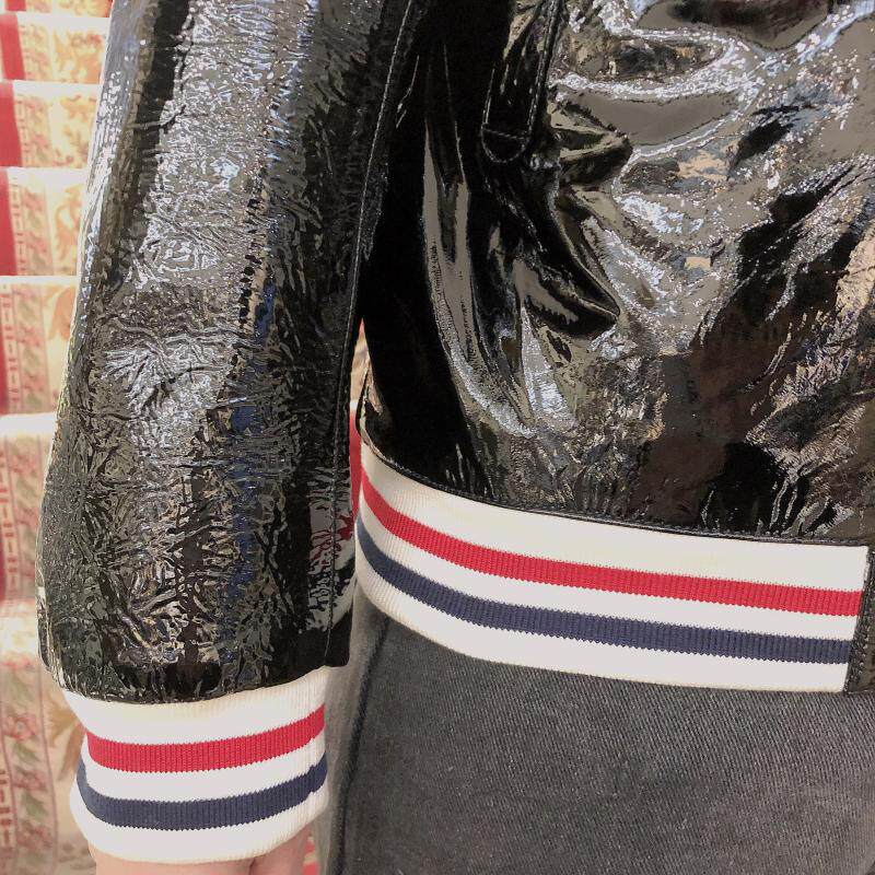 Подлинный Thom Browne/Tom Brown 22 Новая мужская мода Классическая яркая кожаная хлопчатобумажная куртка