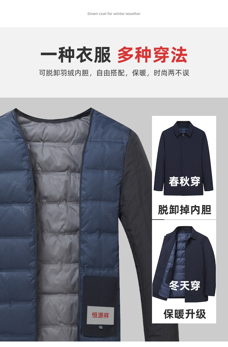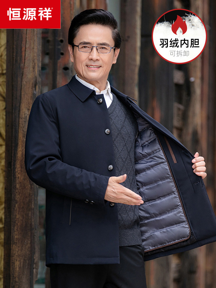 恒源祥 Демисезонный пуховик, легкая и тонкая куртка, увеличенная толщина, для мужчины среднего возраста