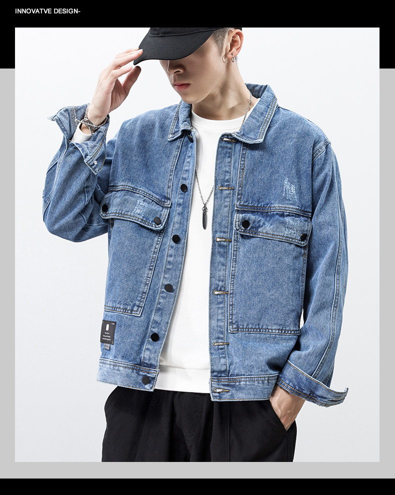 Весенняя синяя джинсовая японская осенняя куртка