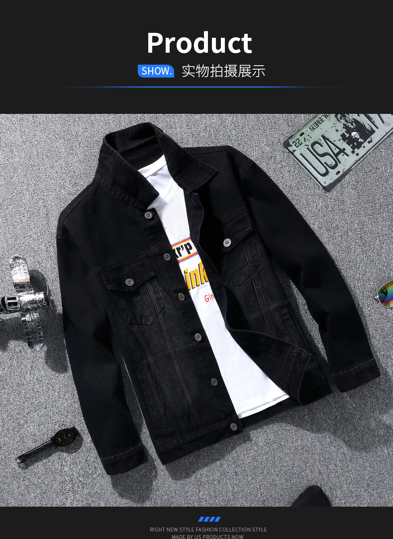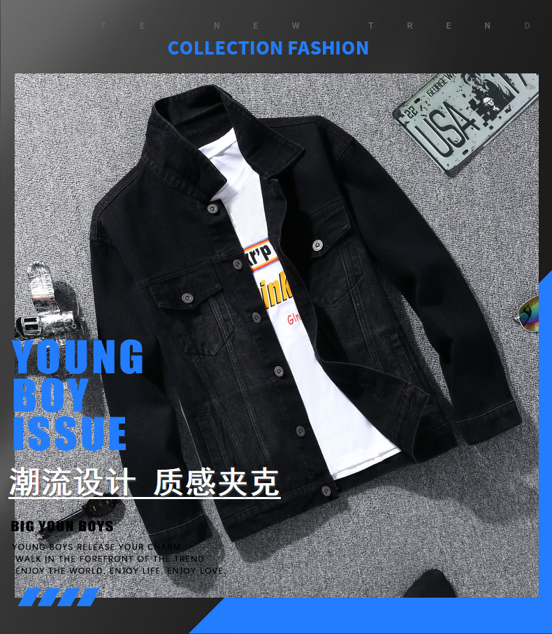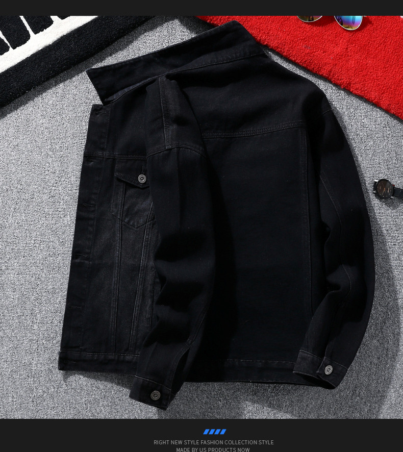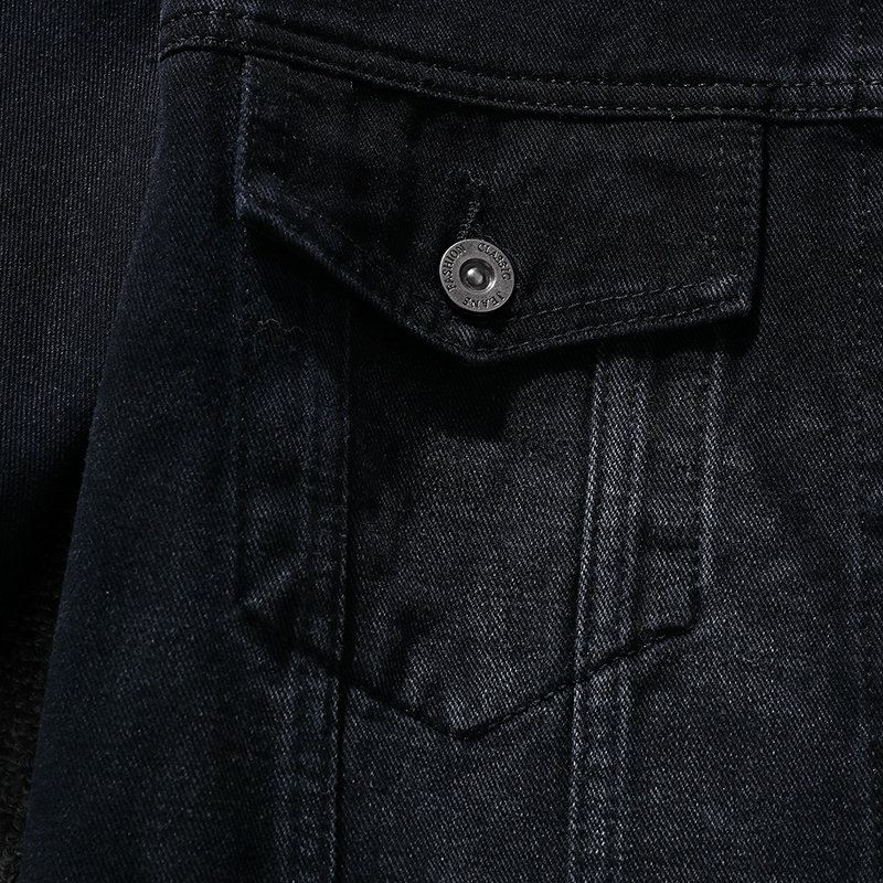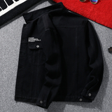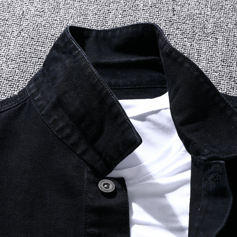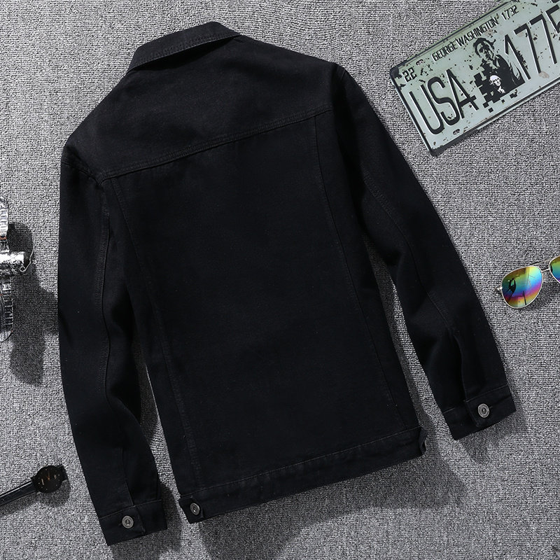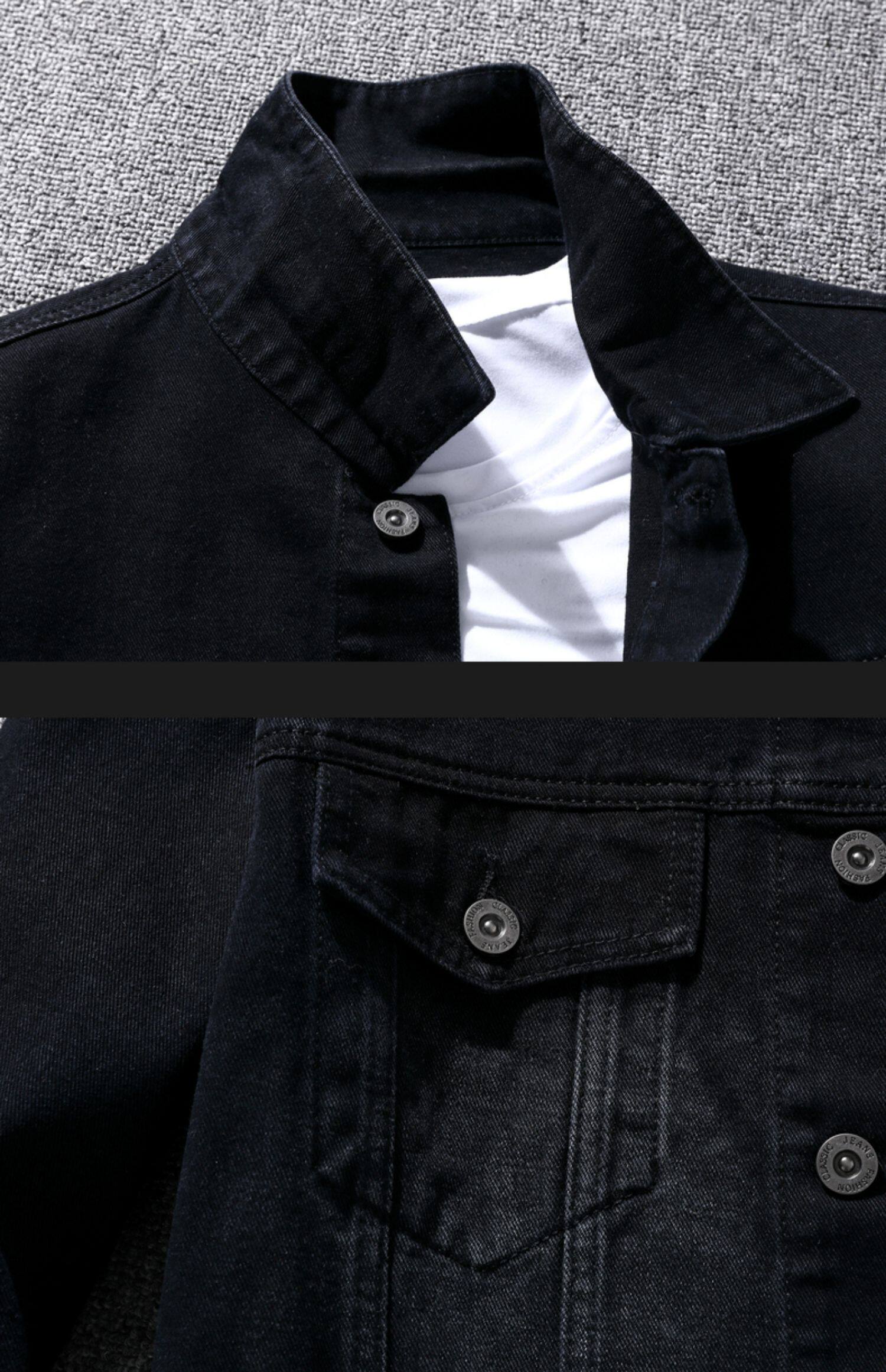 Мужская джинсовая куртка, бейсбольная форма, демисезонная черная утепленный лонгслив, осенняя, в корейском стиле