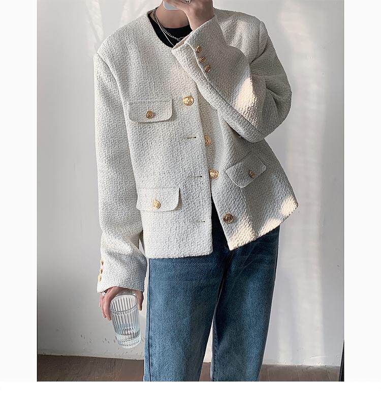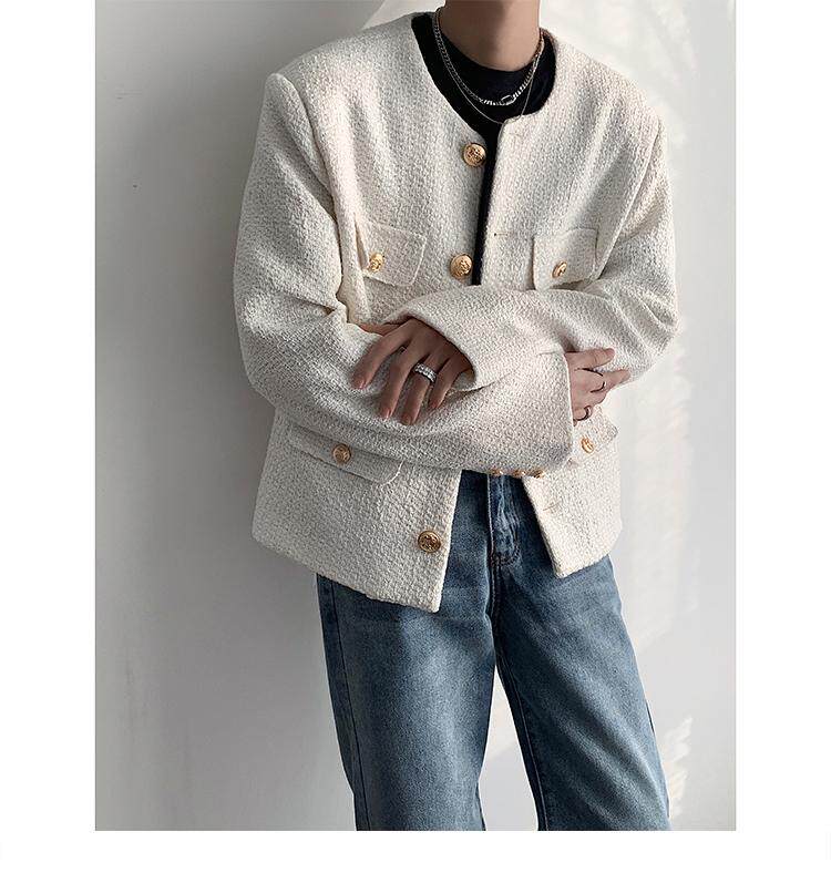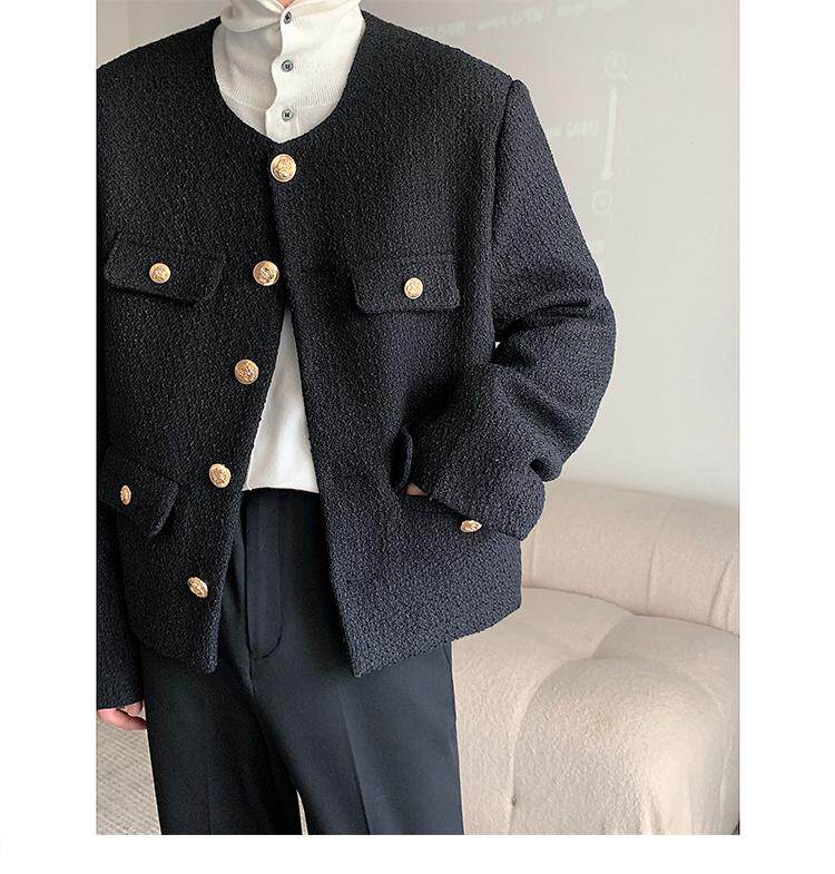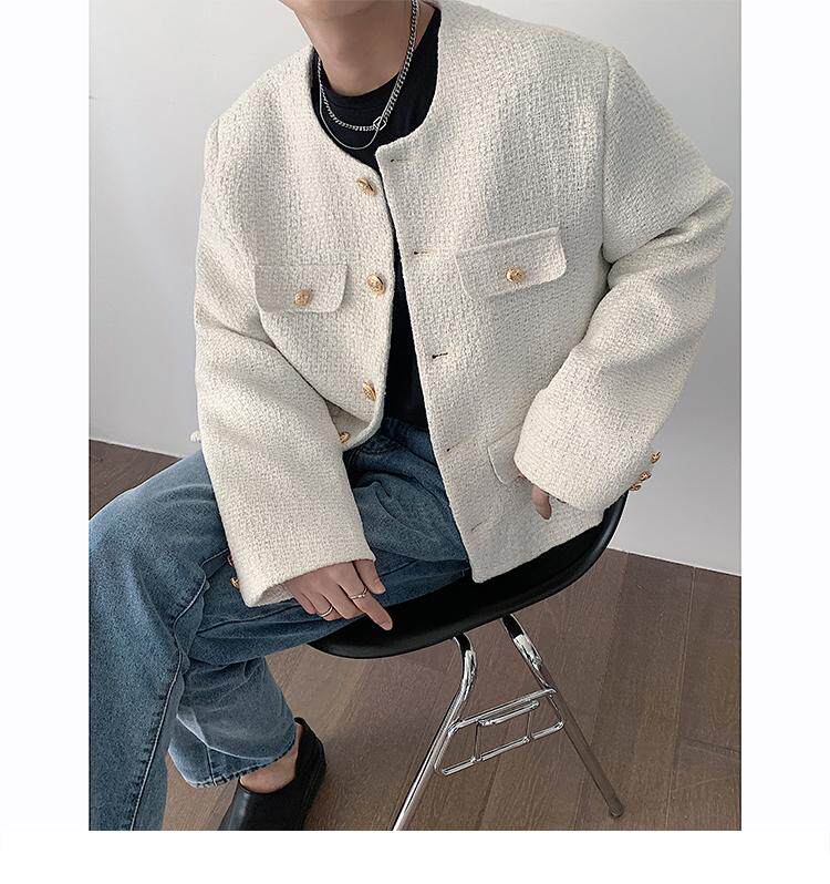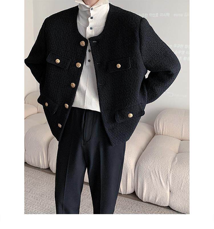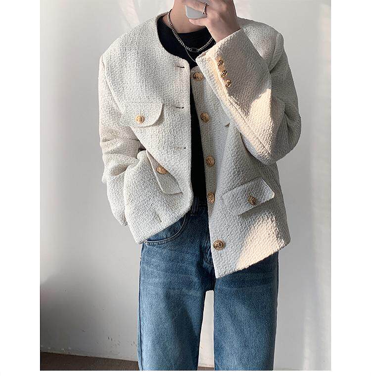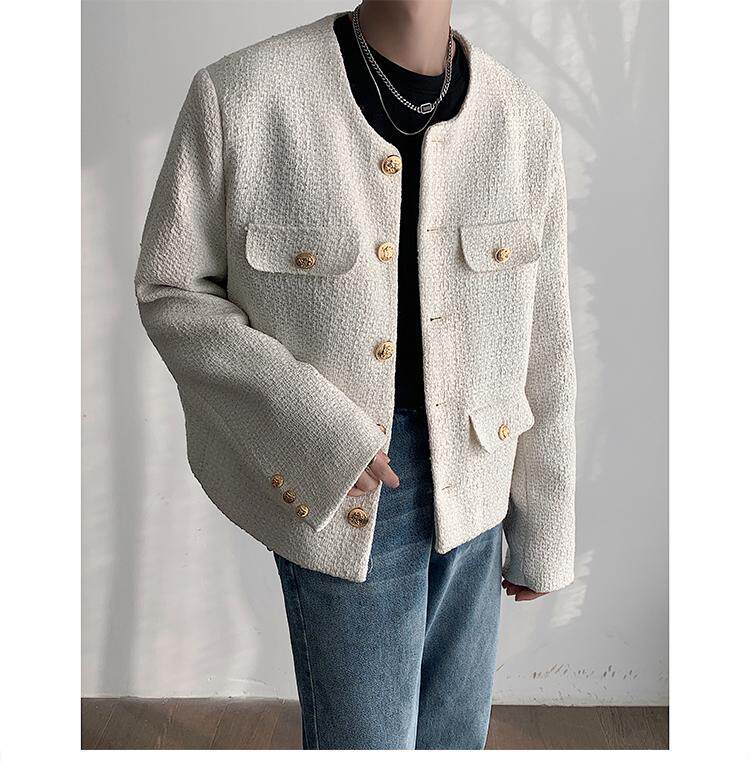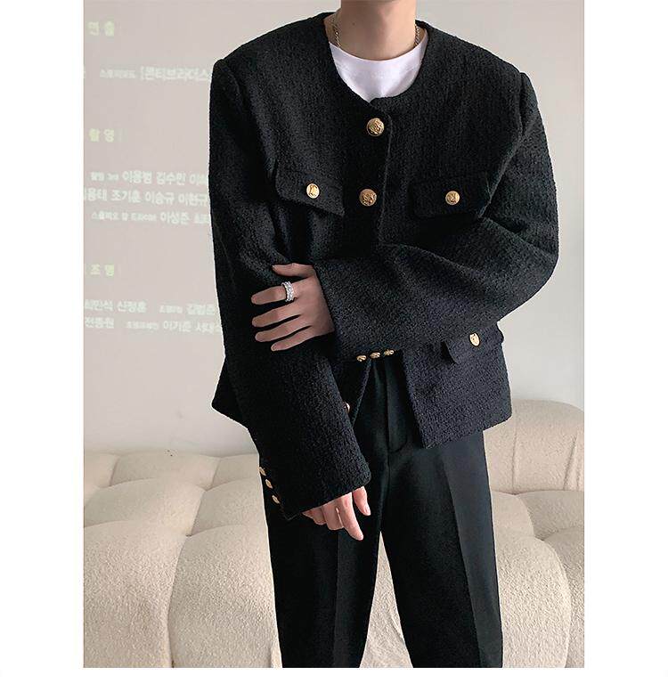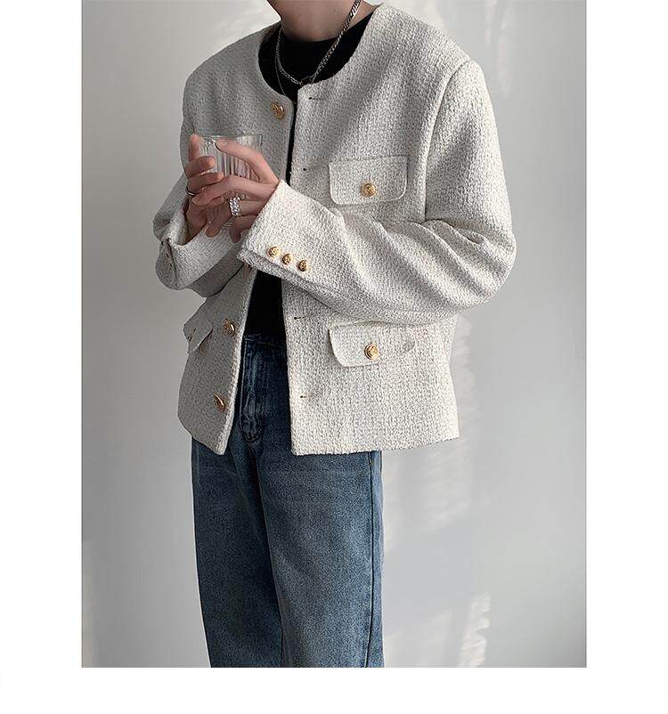 Осенняя мужская короткая куртка с круглым воротником для отдыха, в стиле Шанель, в корейском стиле, популярно в интернете