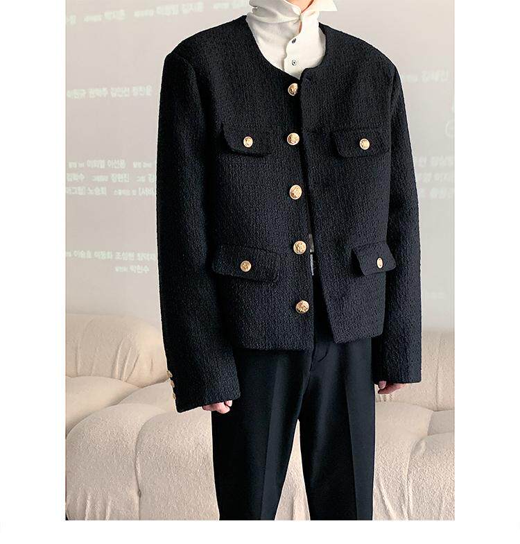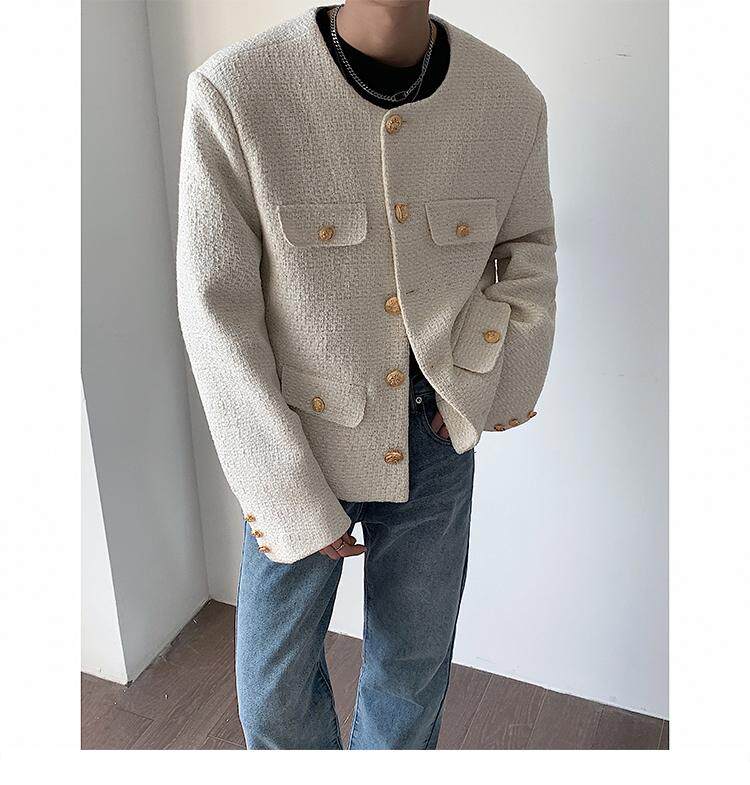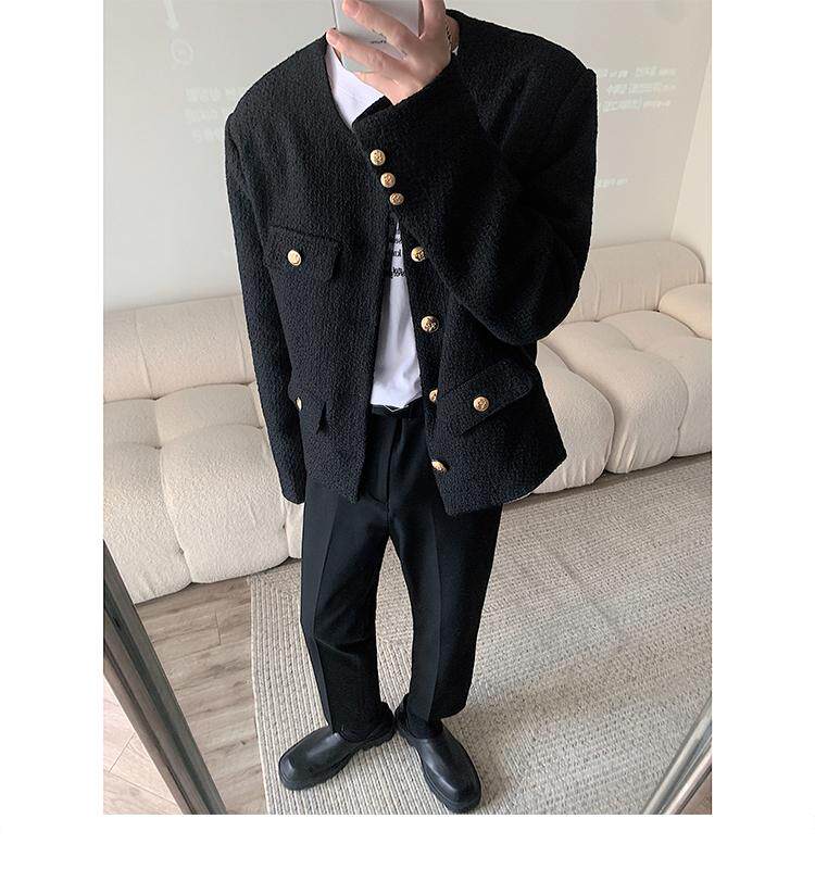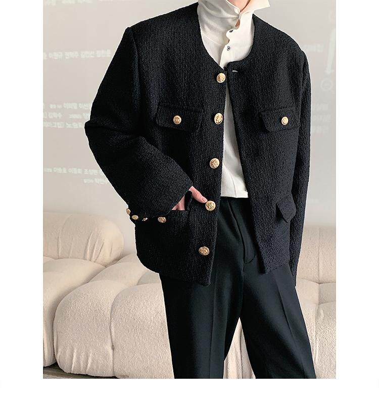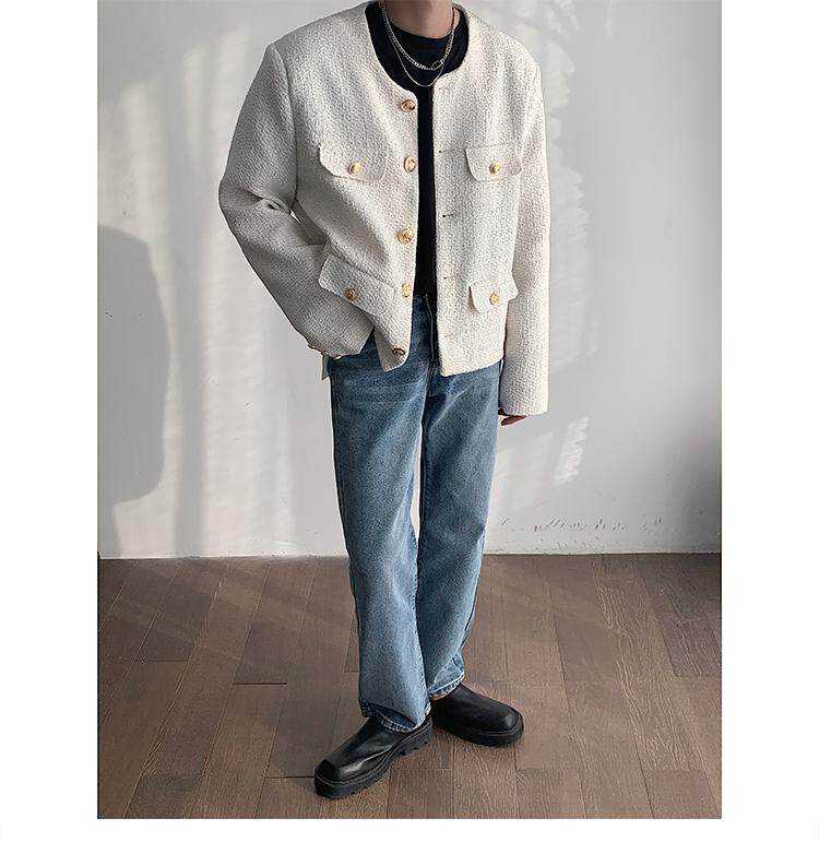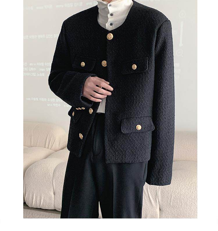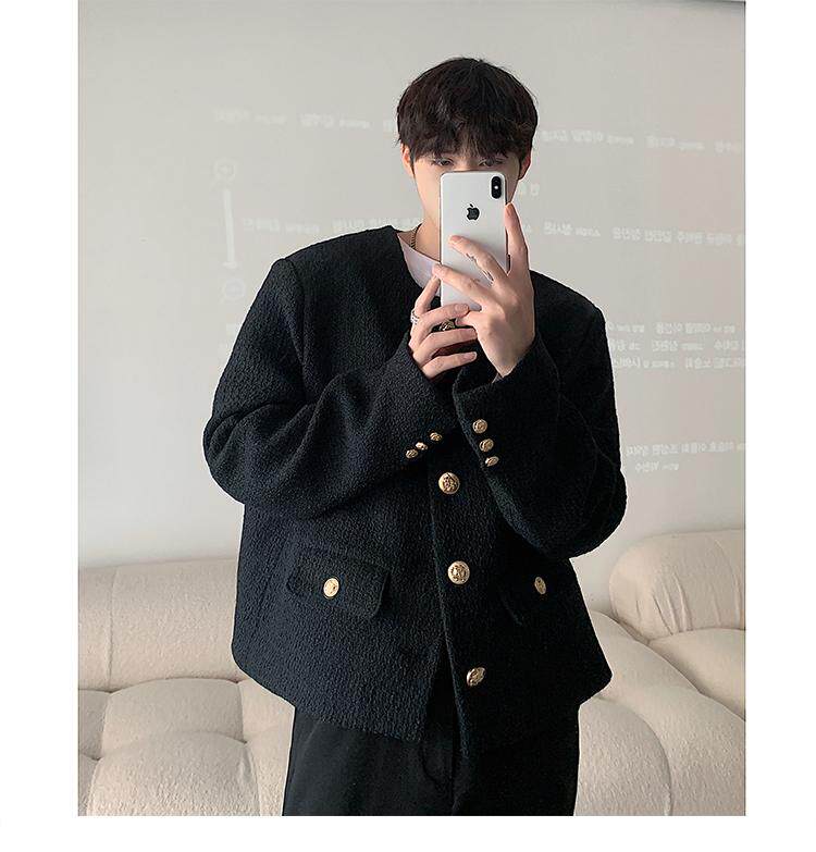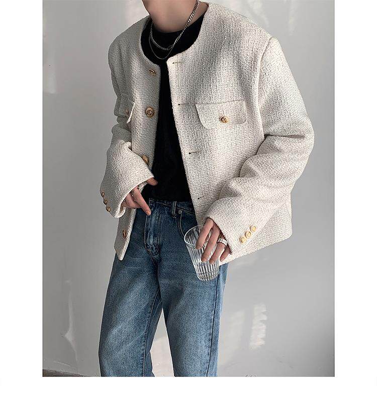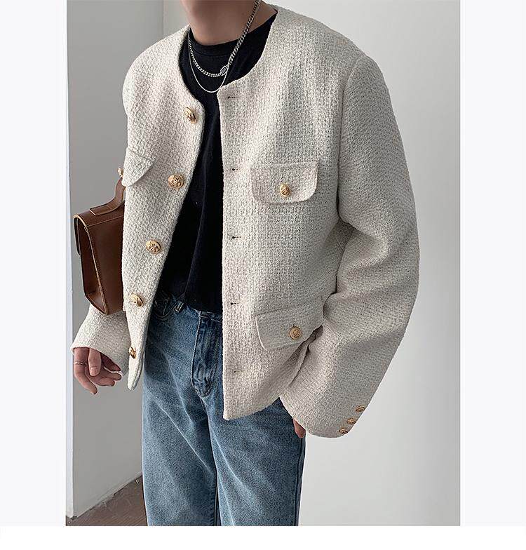 Осенняя мужская короткая куртка с круглым воротником для отдыха, в стиле Шанель, в корейском стиле, популярно в интернете
