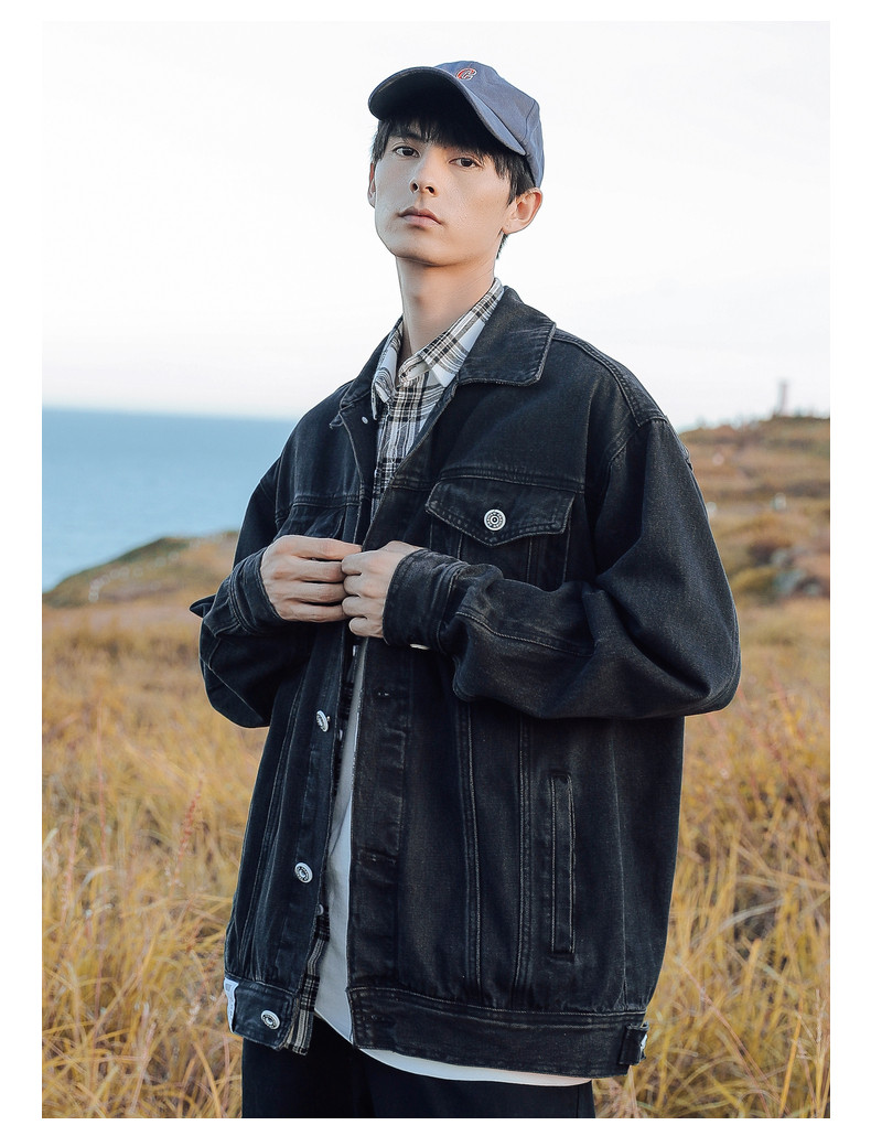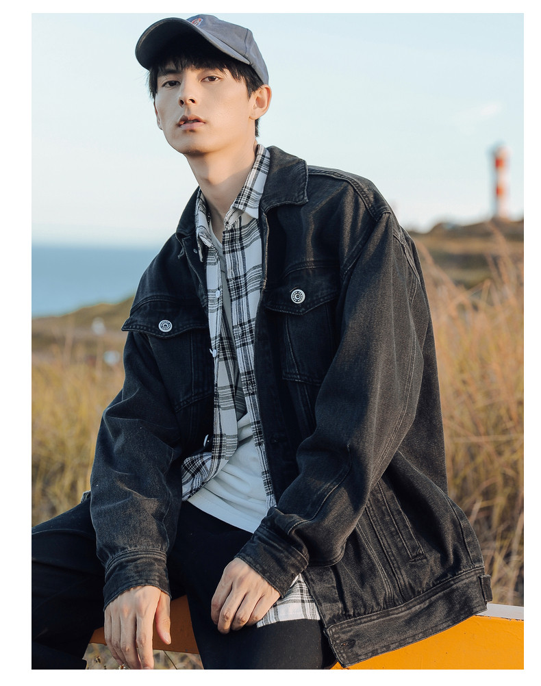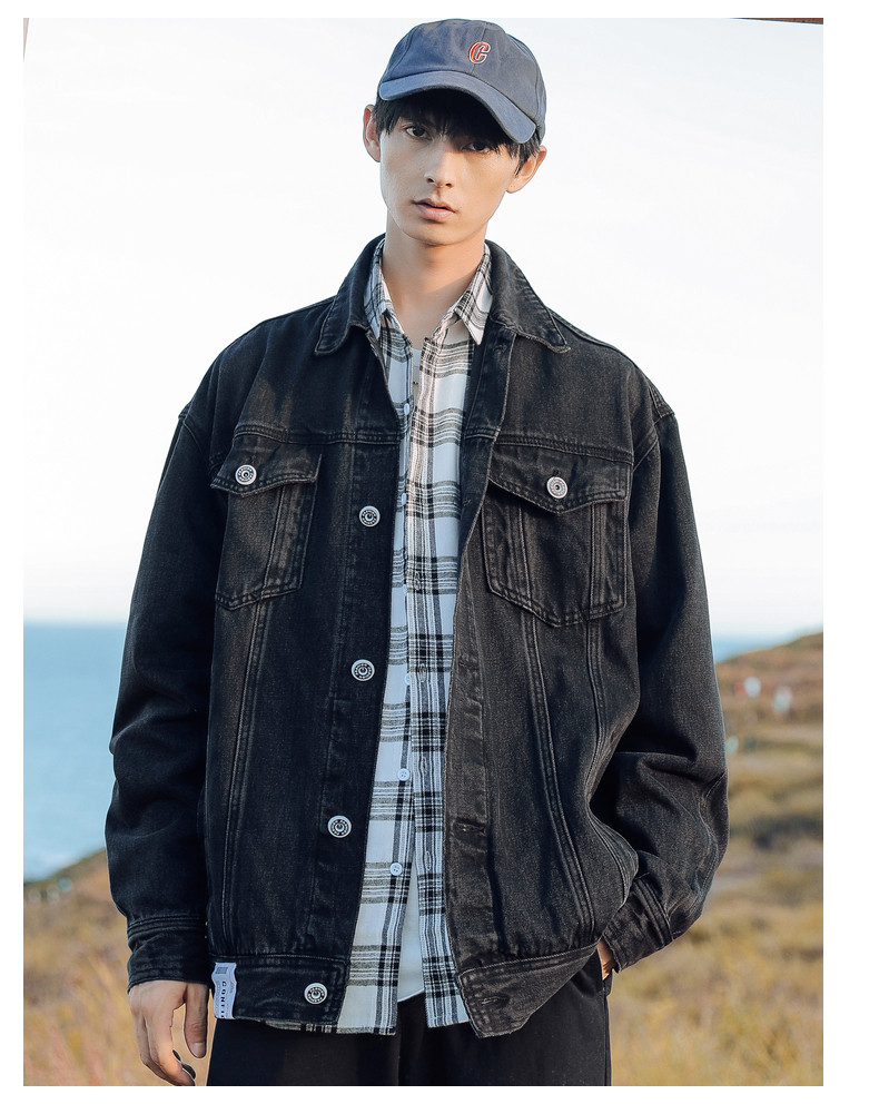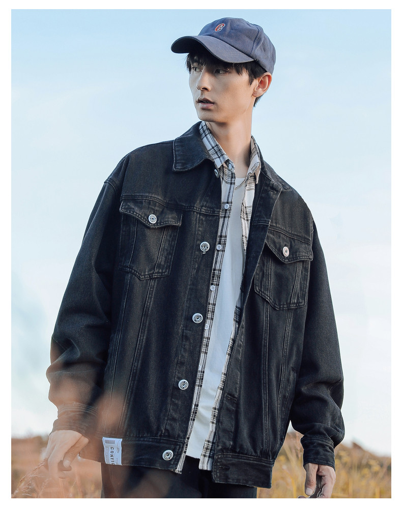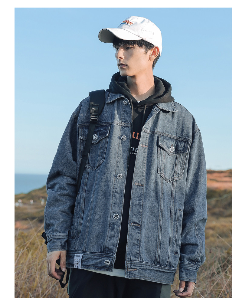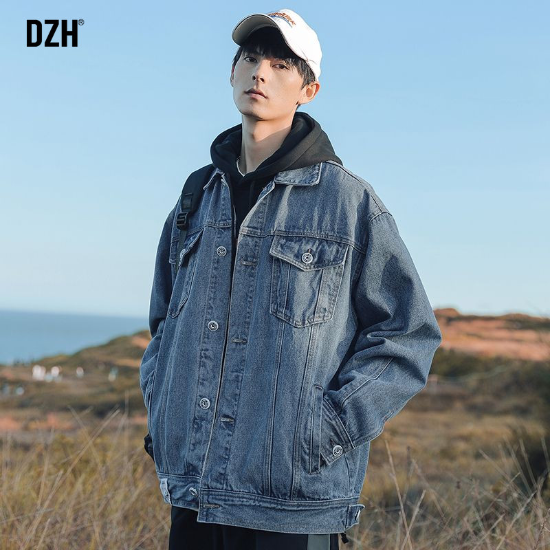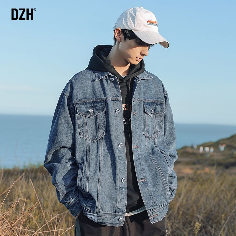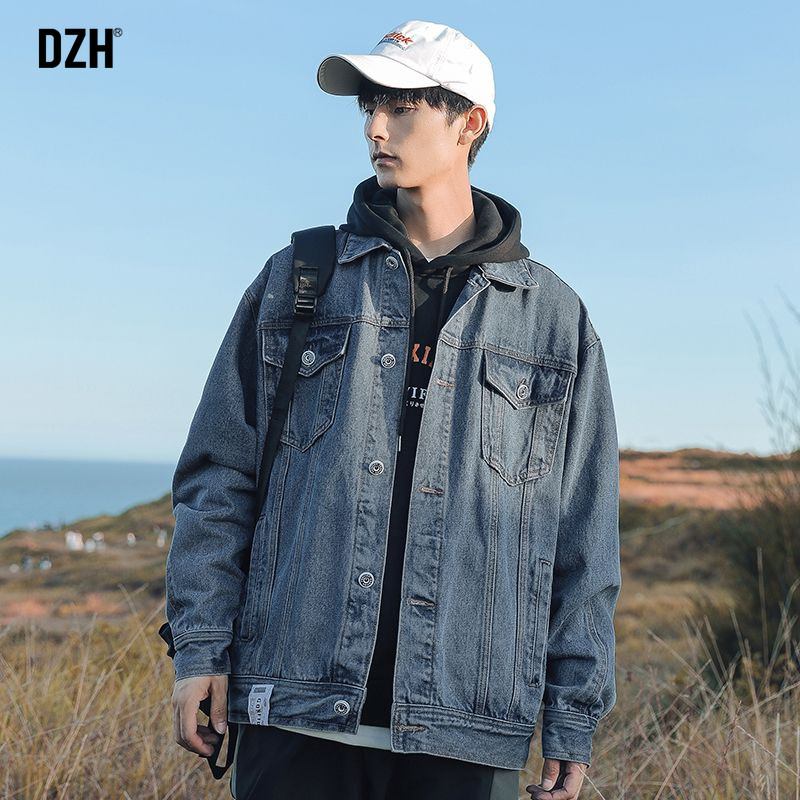 Японская джинсовая мужская трендовая куртка, джинсовое осеннее термобелье, в корейском стиле, оверсайз