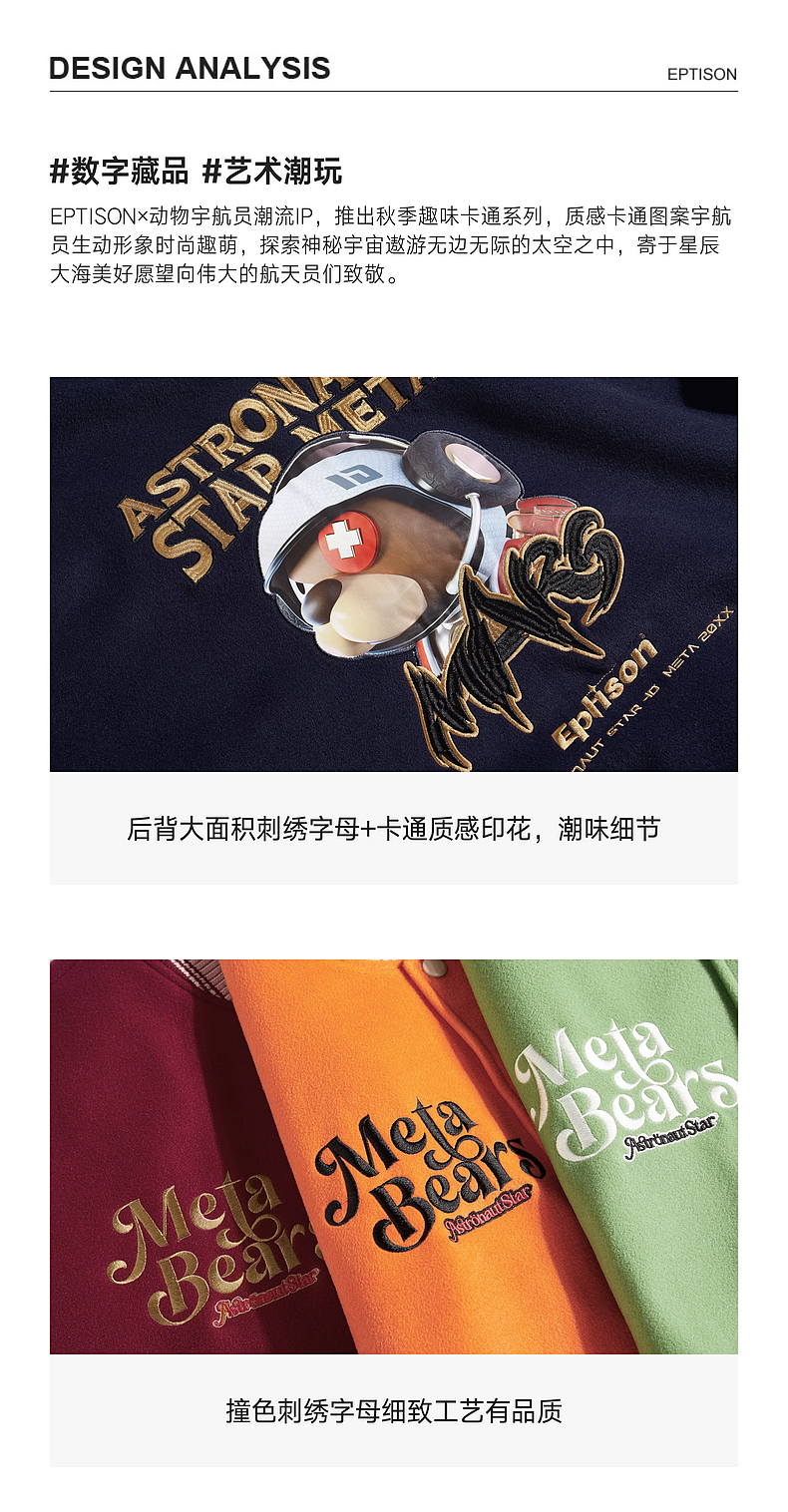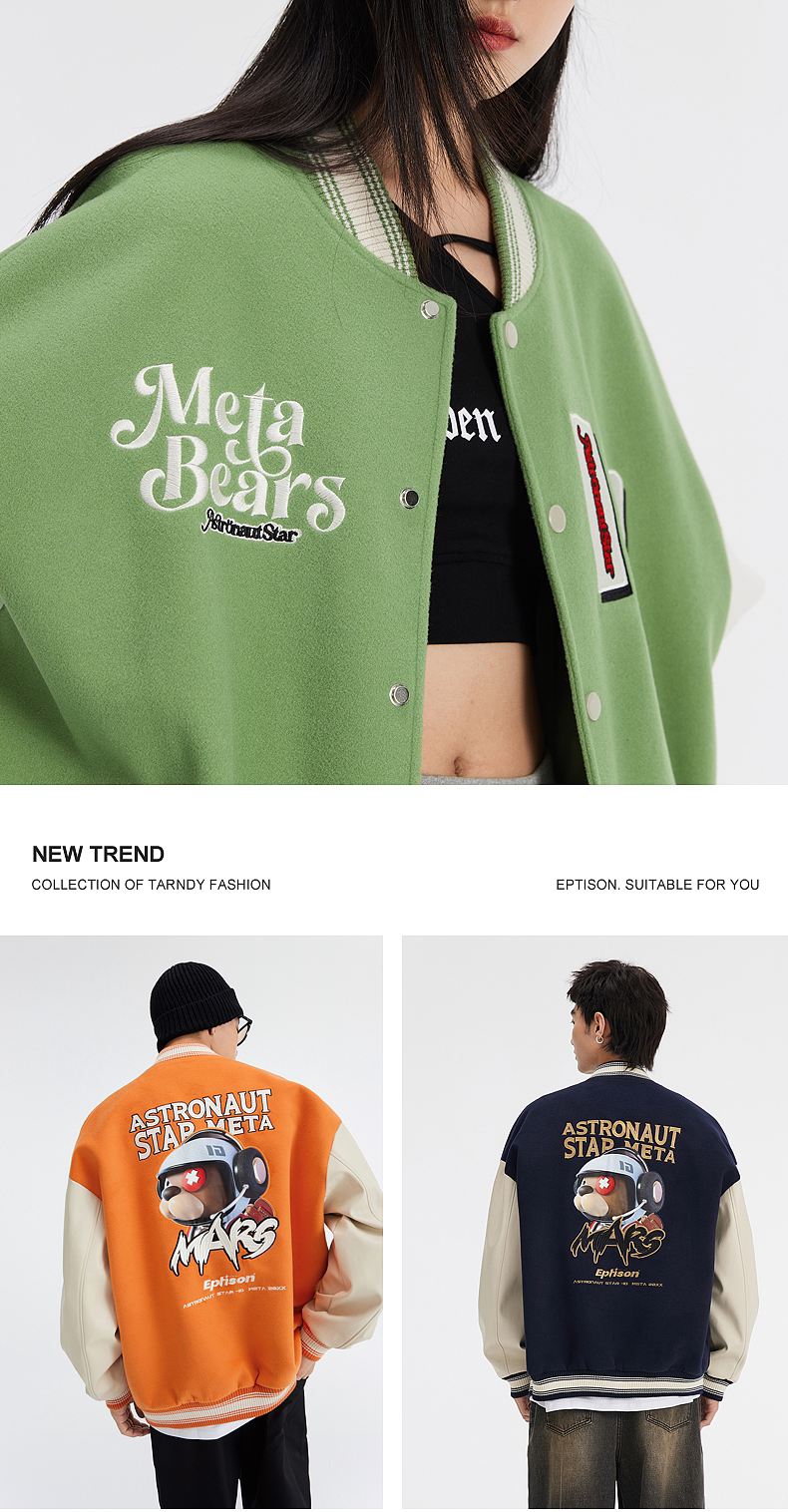 Eptison Meta новая высококачественная шерстяная бейсбольная куртка с забавным принтом и изображением животных-астронавтов для мужчин