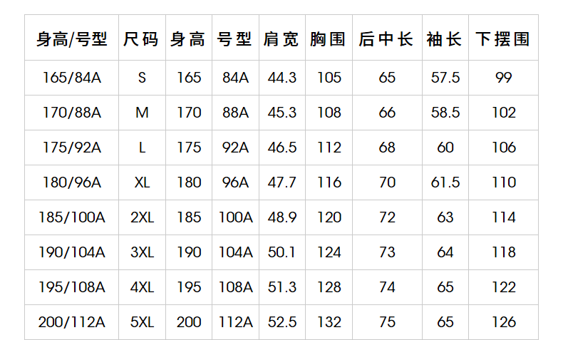 | Размер: | 165/84A S, 170/88A M, 175/92A L, 180/96A XL, 185/100A 2XL, 190/104A 3XL, 195/108A 4XL, 200/112A 5XL |
