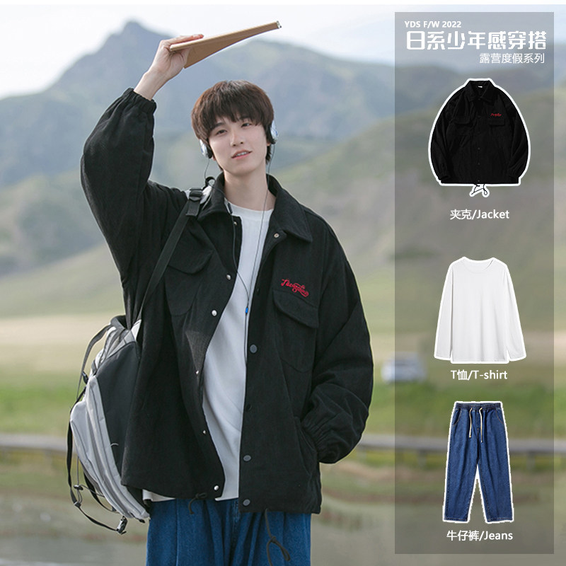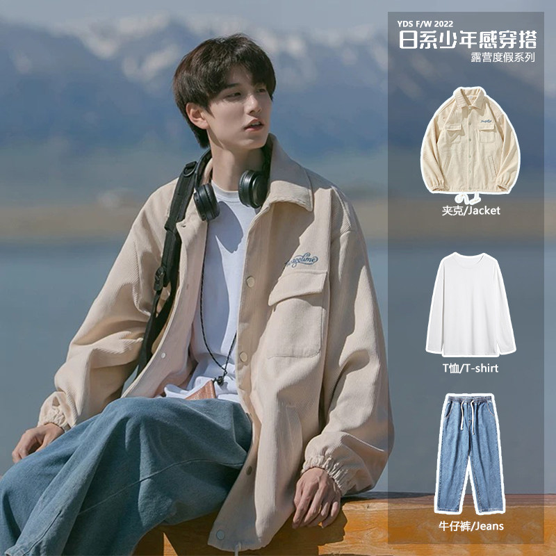 Японский комплект, вельветовая куртка, 3 предмета, осенний