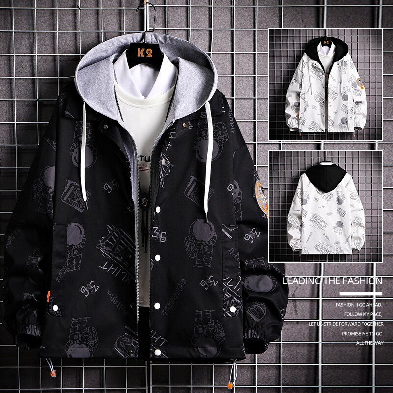 Мужская куртка, демисезонный трендовый универсальный комплект с капюшоном для отдыха, оверсайз