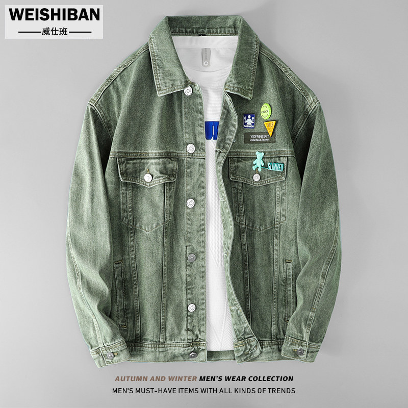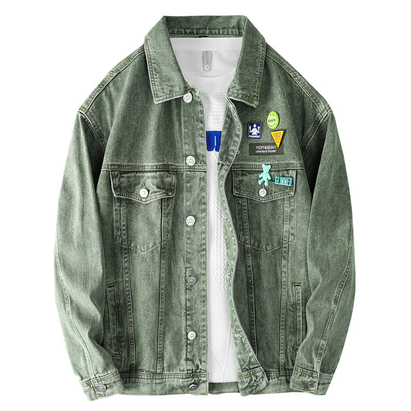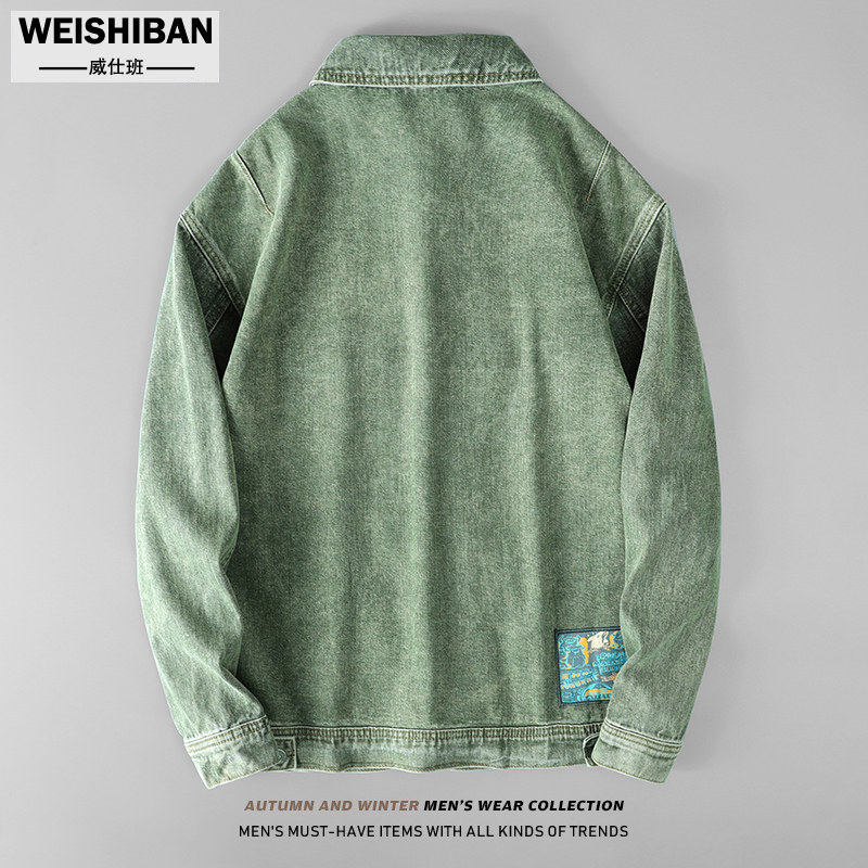 Японская ретро джинсовая зеленая куртка подходит для мужчин и женщин для отдыха, оверсайз